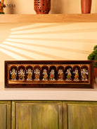 • This wooden hand inlay frame features a unique and intricate design of the Dasavatharam, showcasing expert craftsmanship and attention to detail.