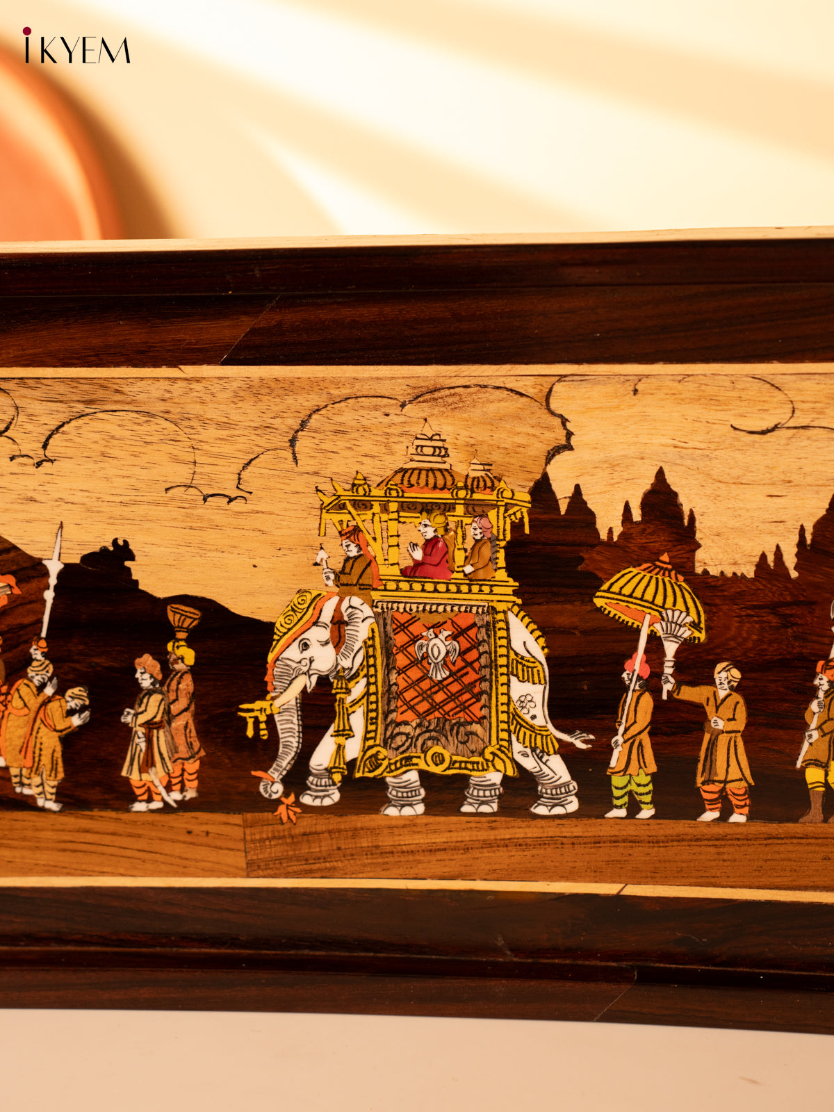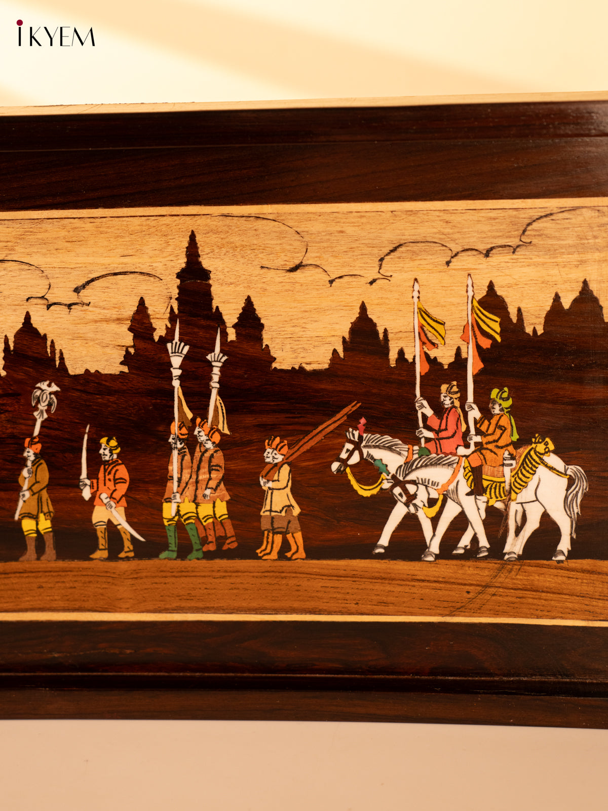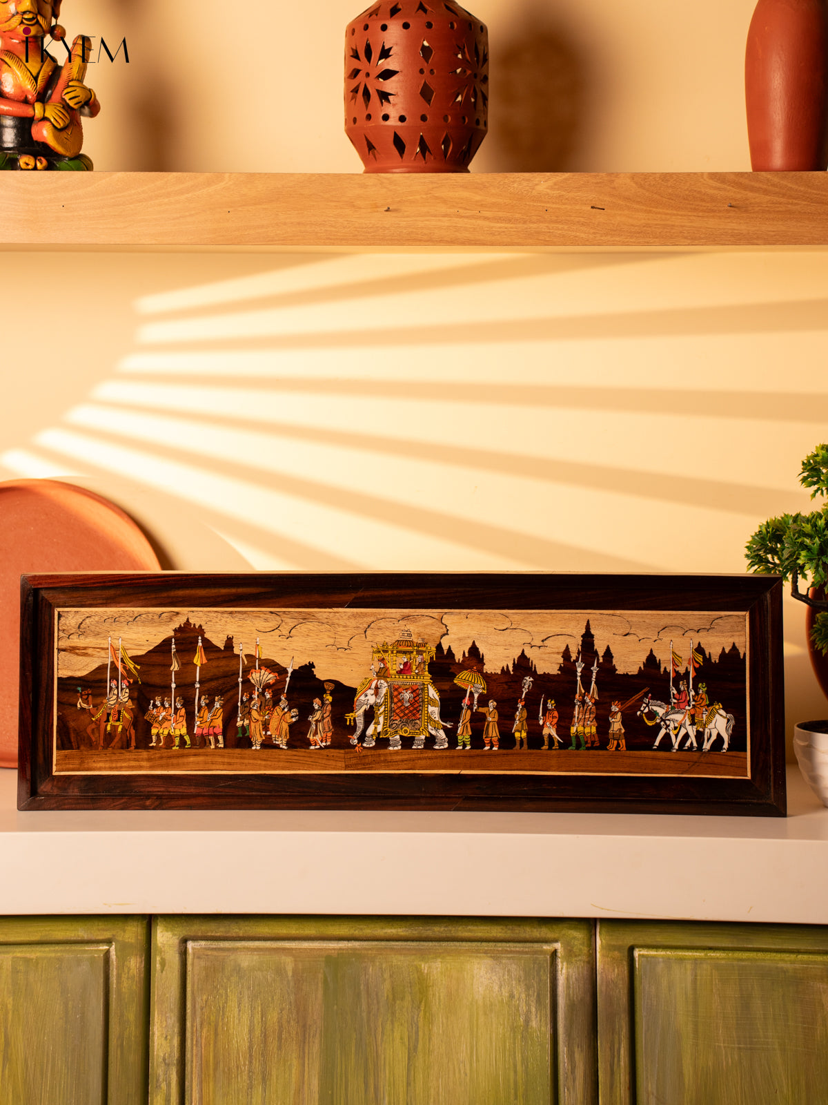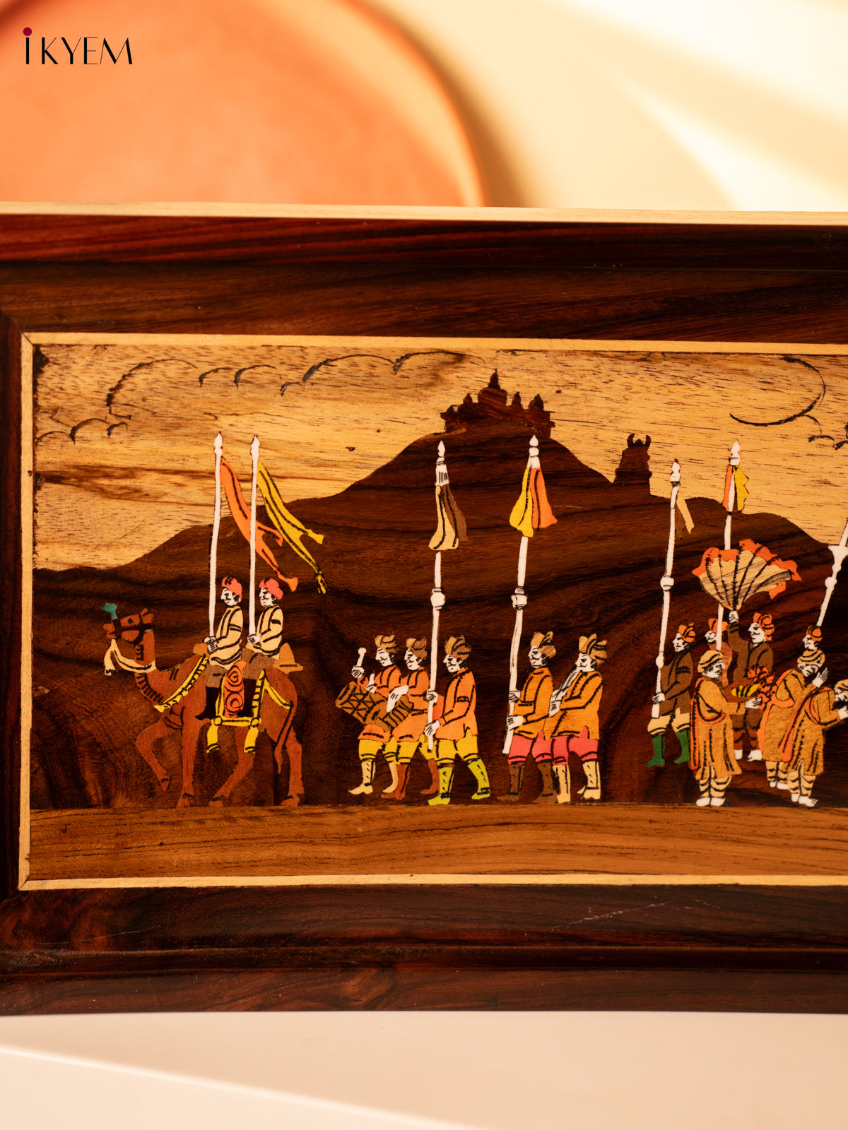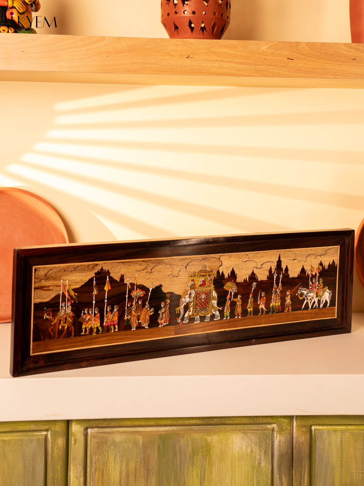 - This Mysore Rosewood Inlay Wooden inlay Frame depicts Krishna Leela with intricate hand-carved details.