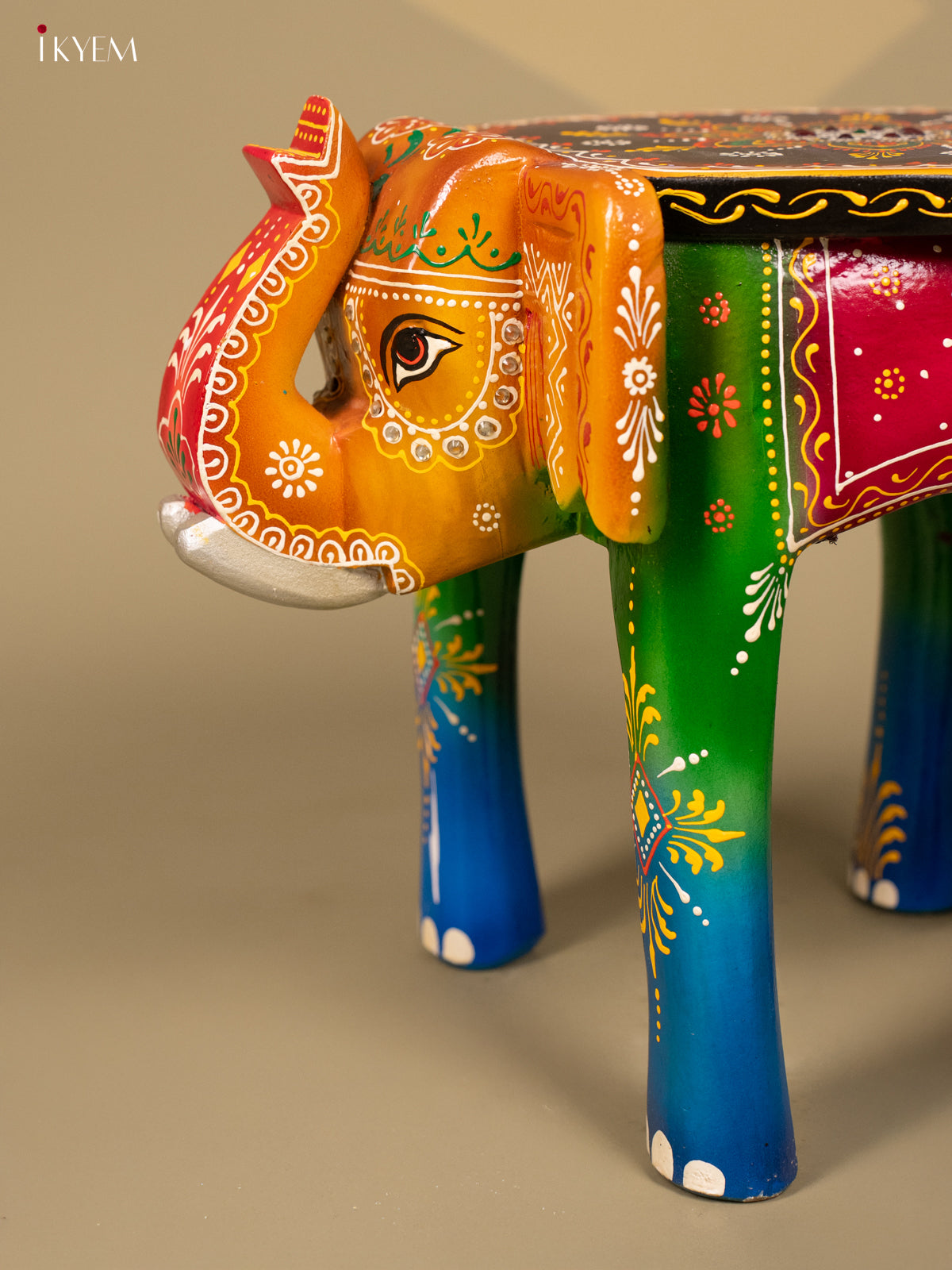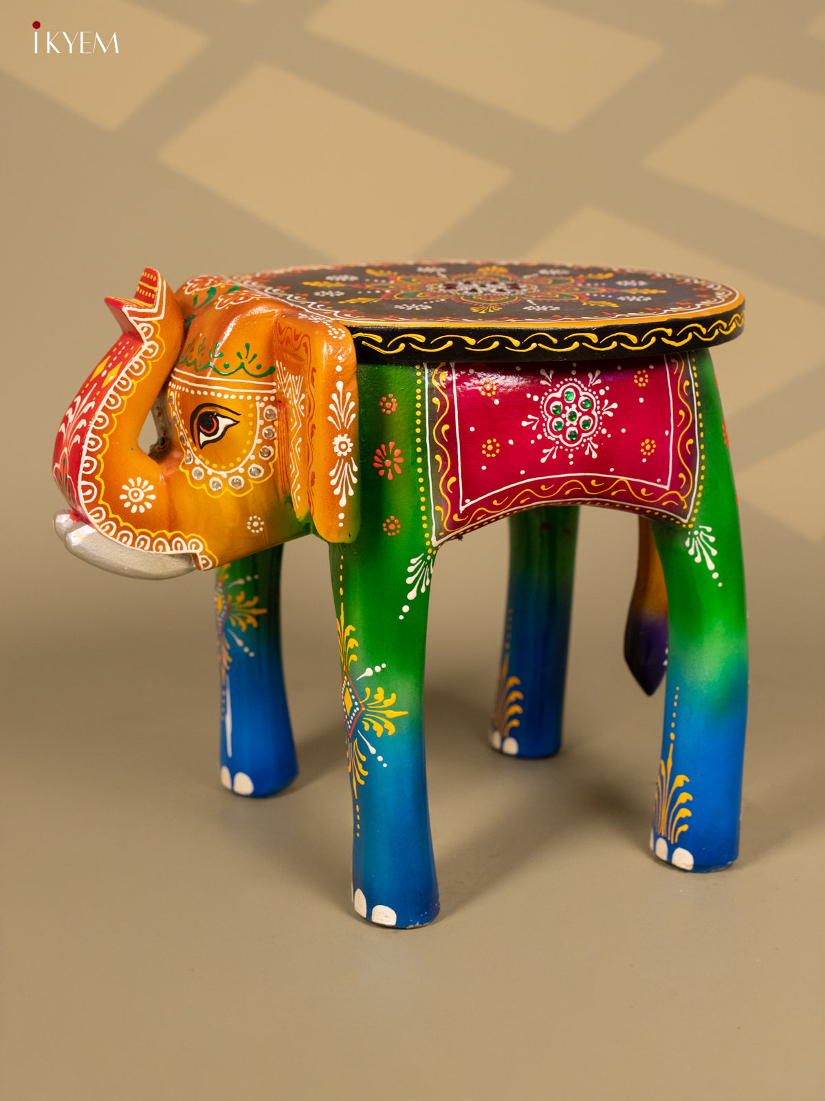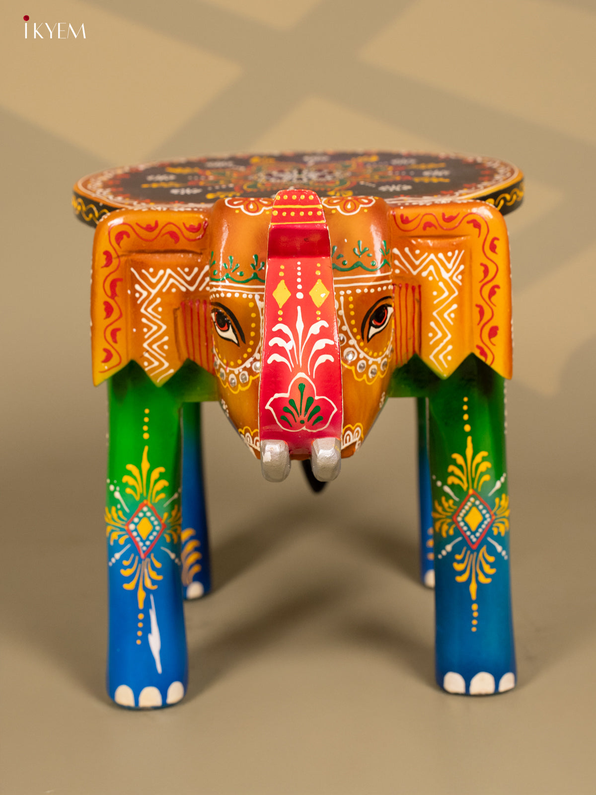 Wooden Hand Painted Elephant Stool Multi Colour - 12 Inch - KB04120