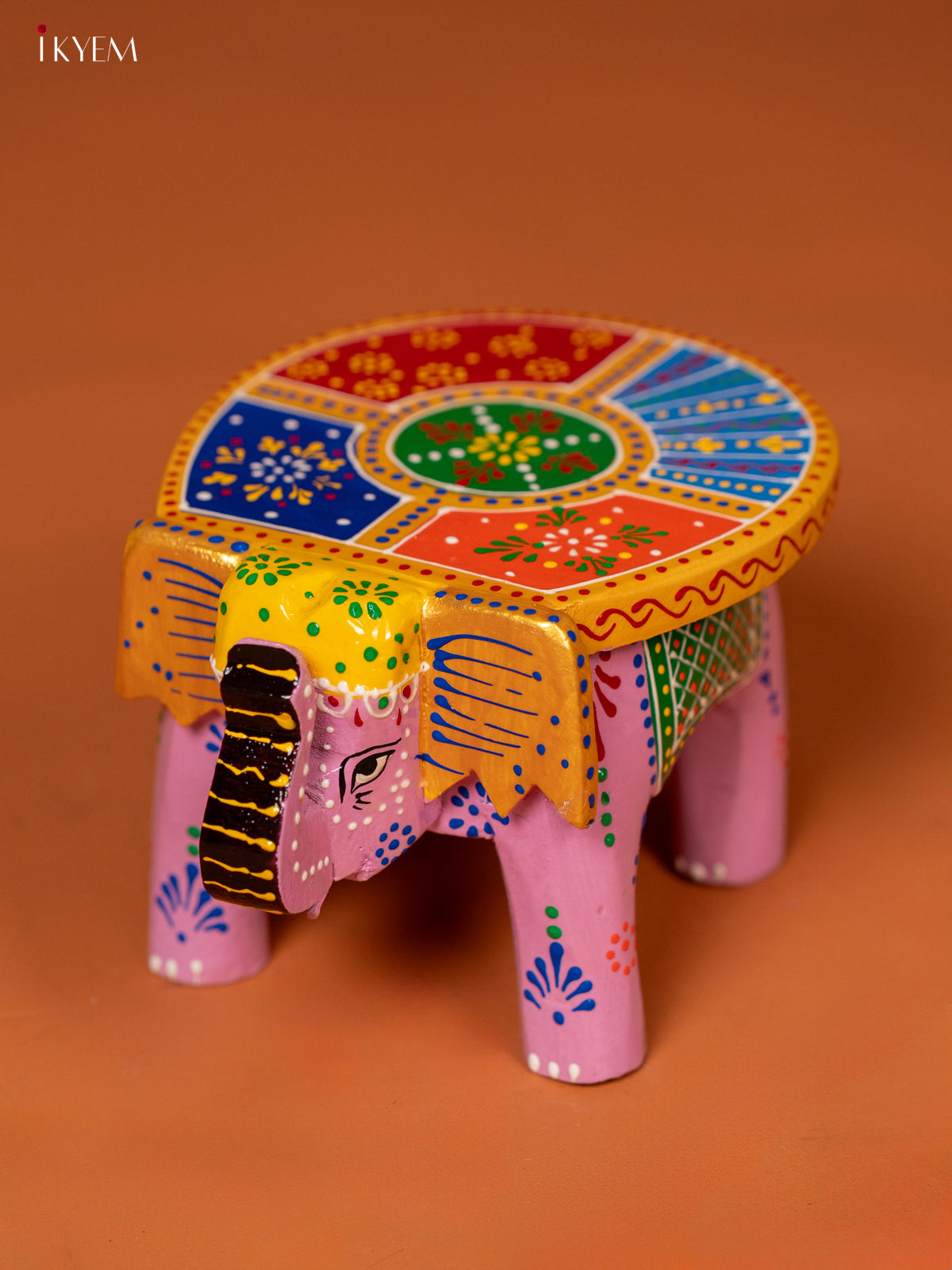 wooden Hand Painted elephant stool 4 inch - Pink - KE27207