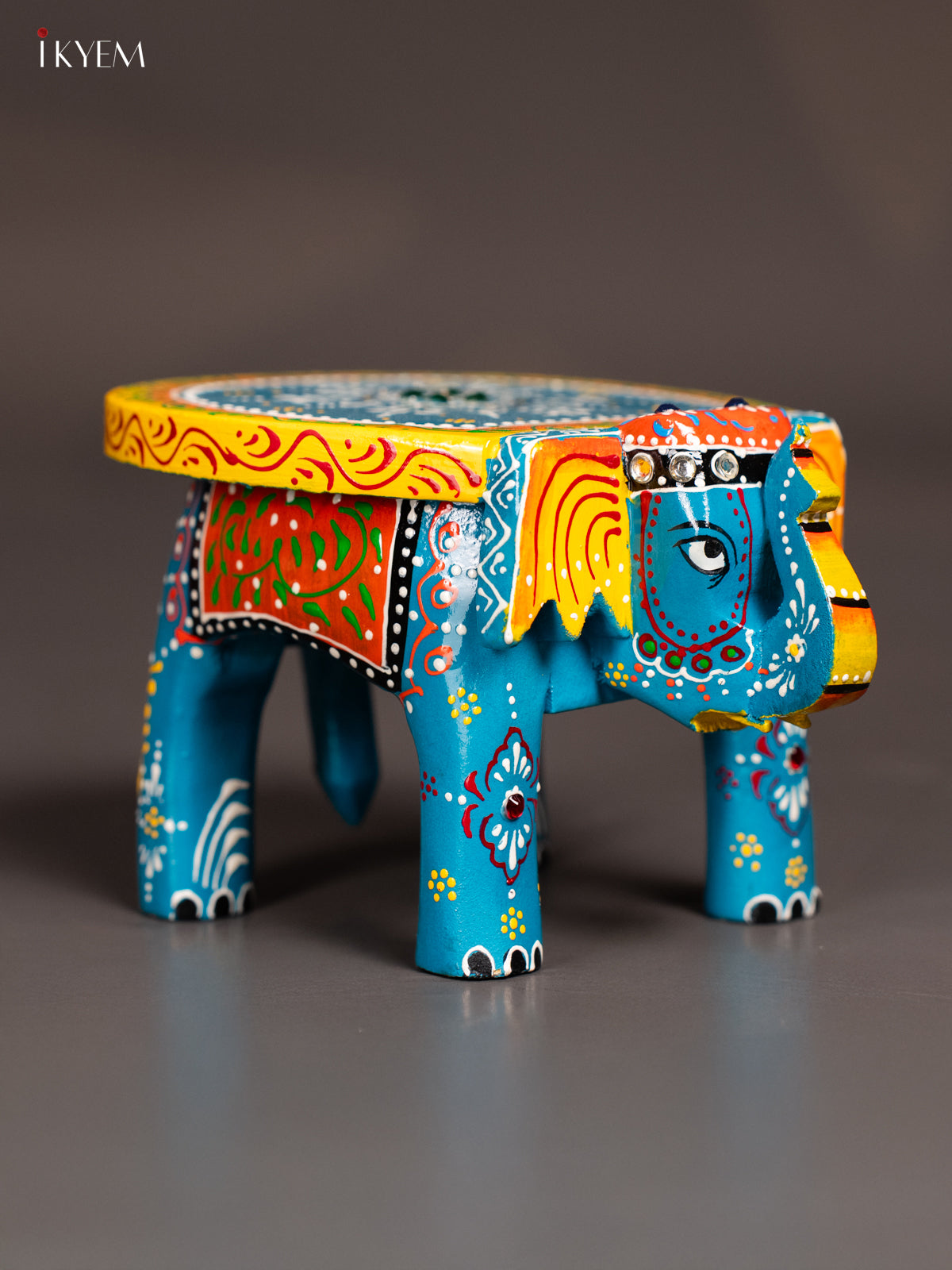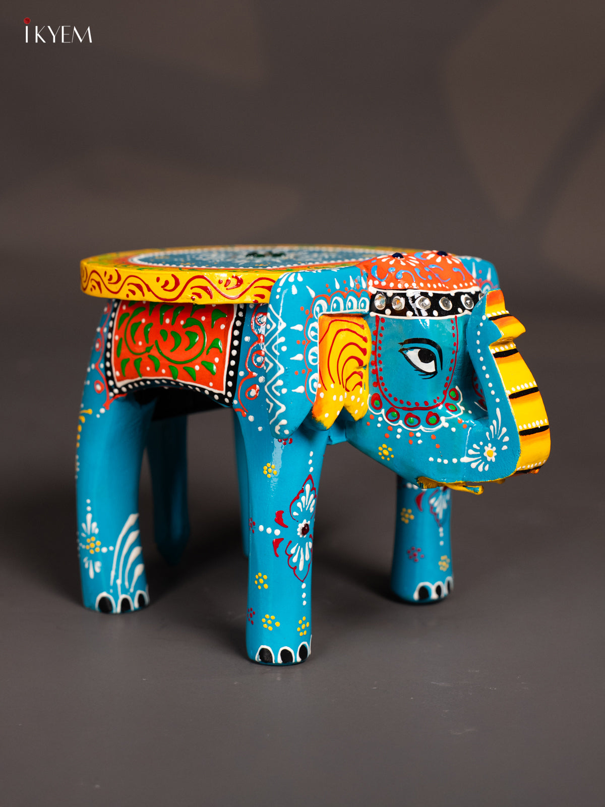 Wooden Hand Painted elephant stool 4 inch - Sky Blue