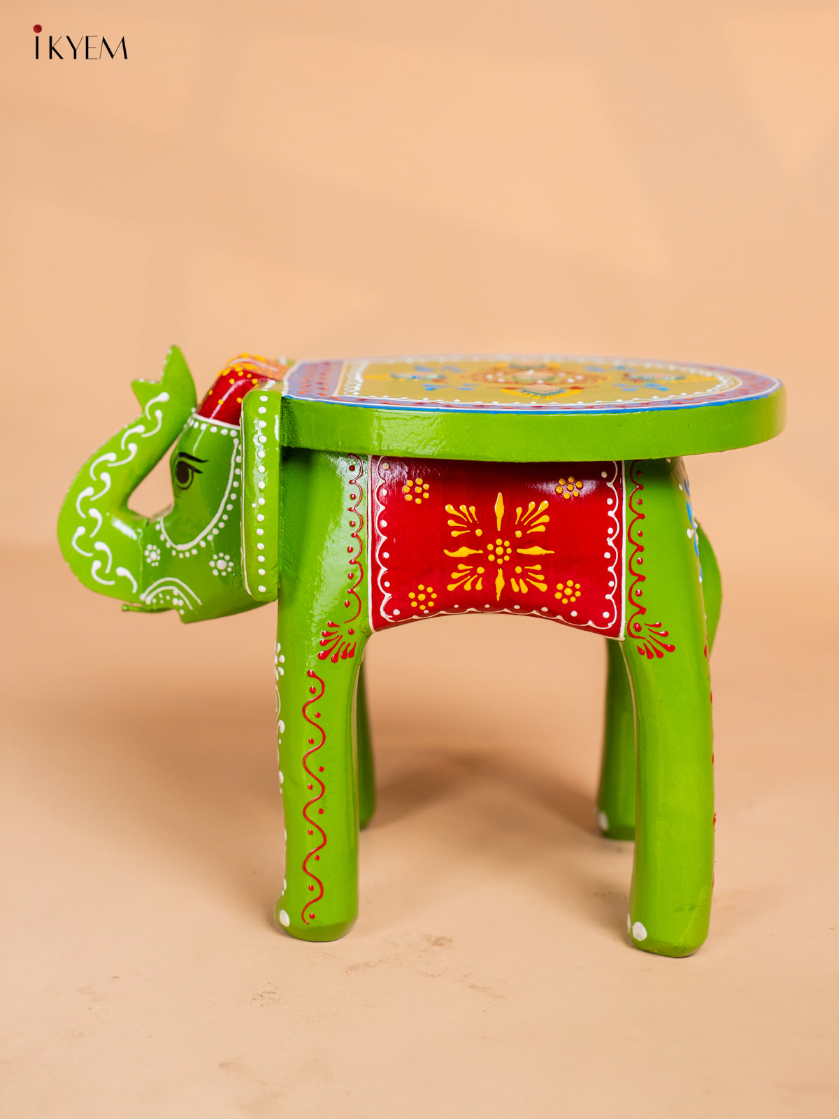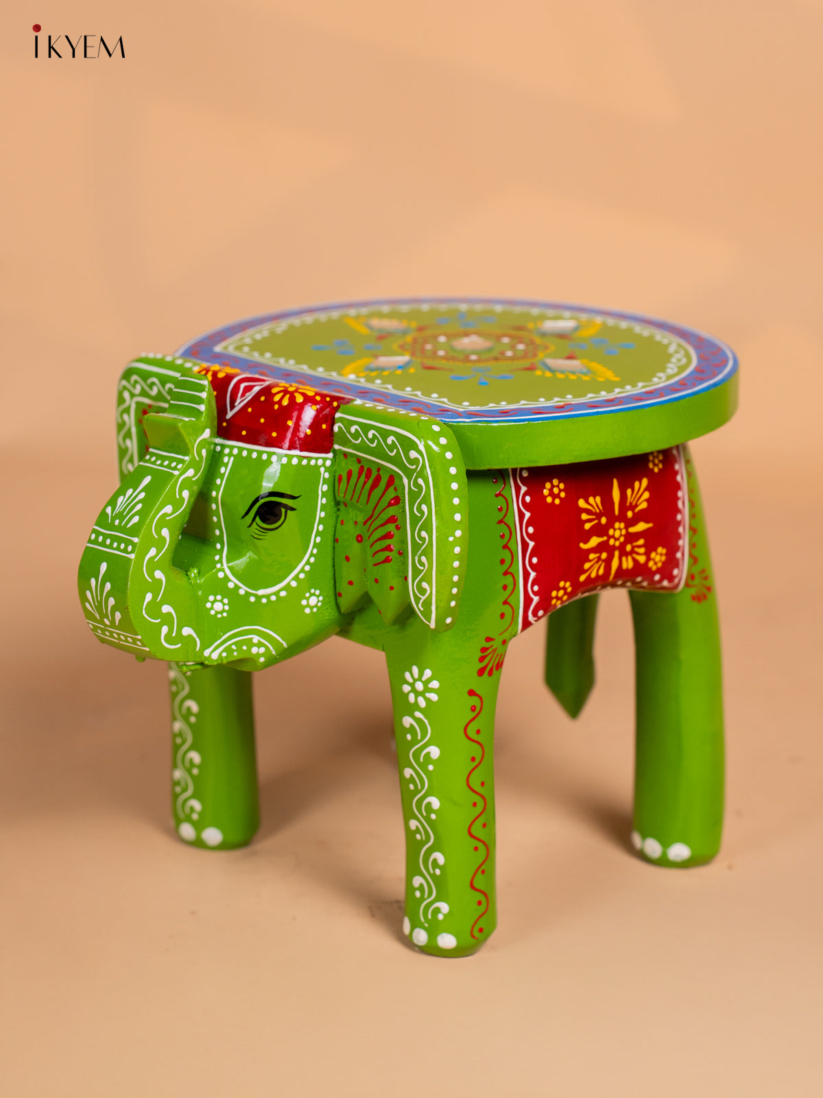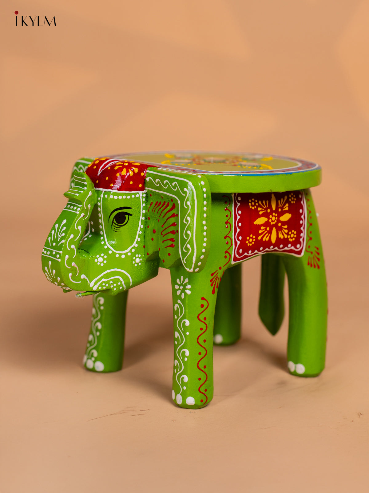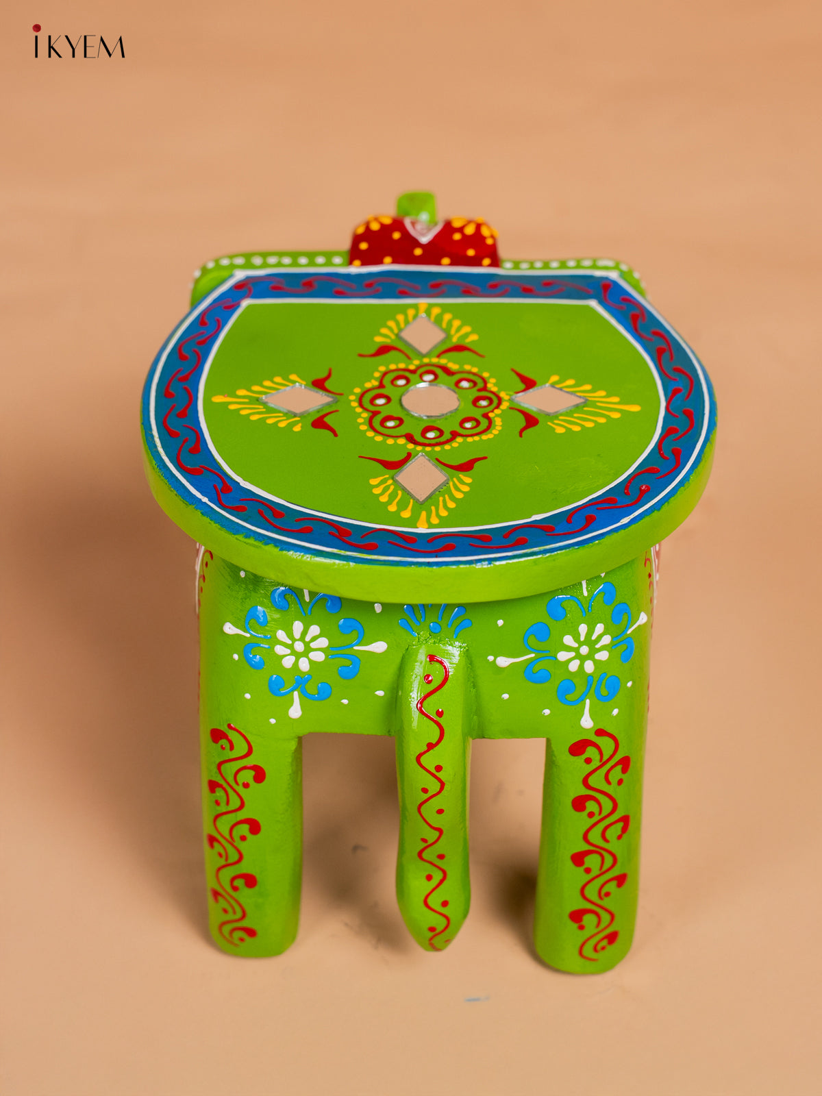 Wooden Hand painted Elephant Stool - Green- 6 Inch