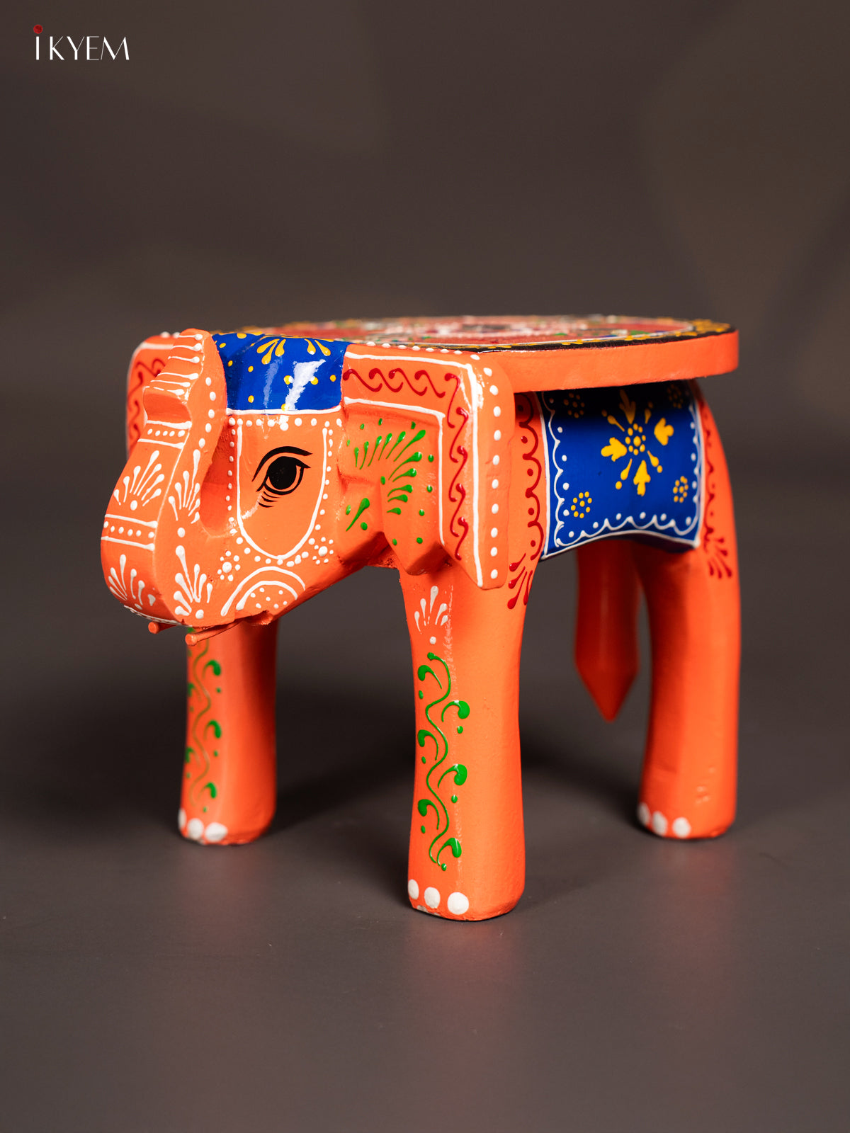 Wooden Hand painted Elephant Stool - Orange - 6 Inch