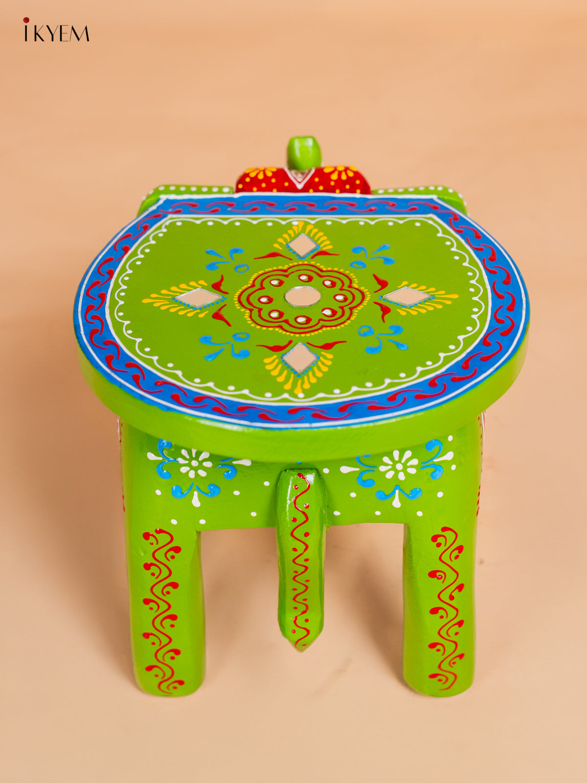 Wooden Hand painted Elephant Stool - Green - 8 Inch