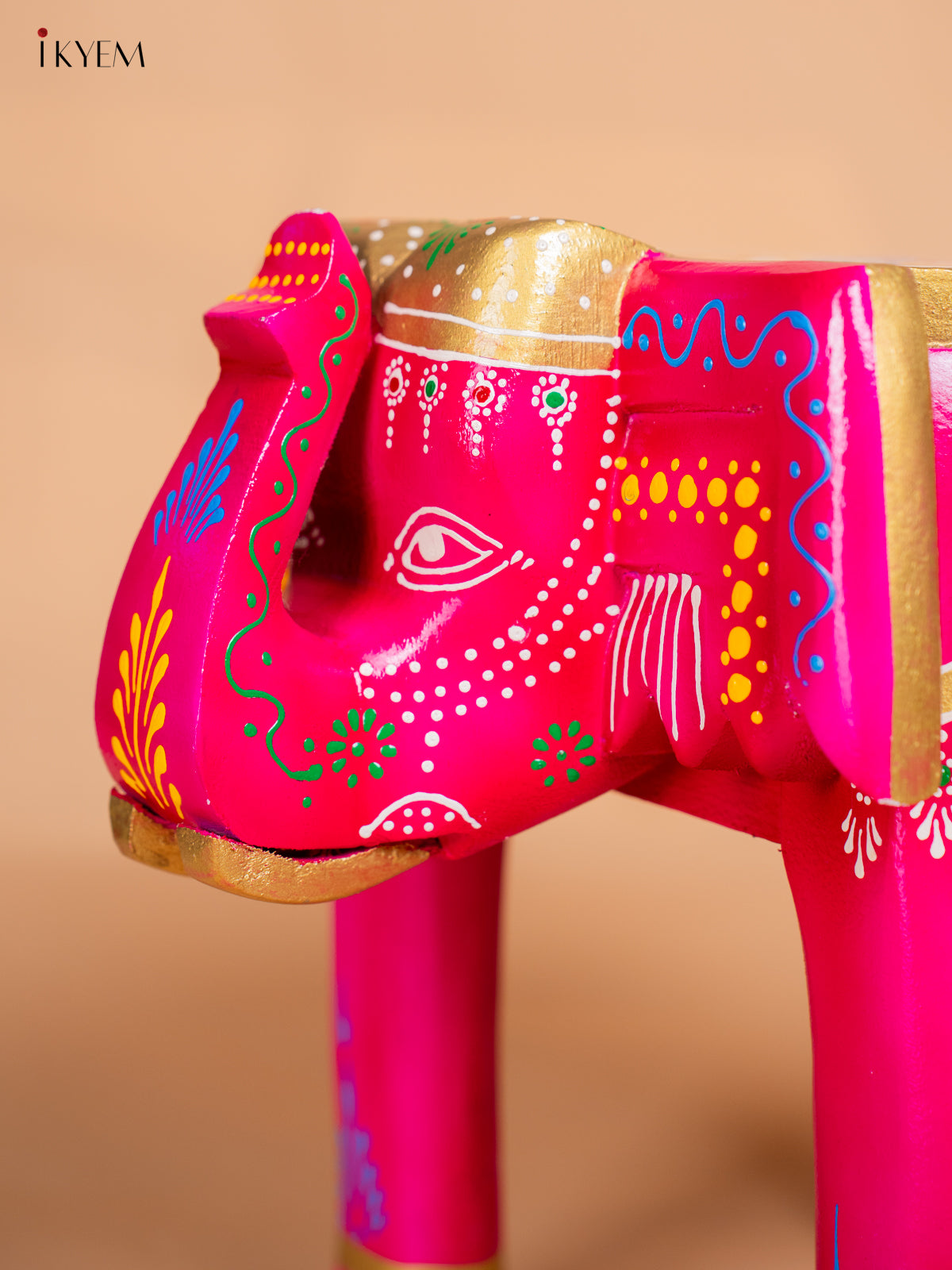 Wooden Hand Painted Elephant Stool - Pink - 12 Inch