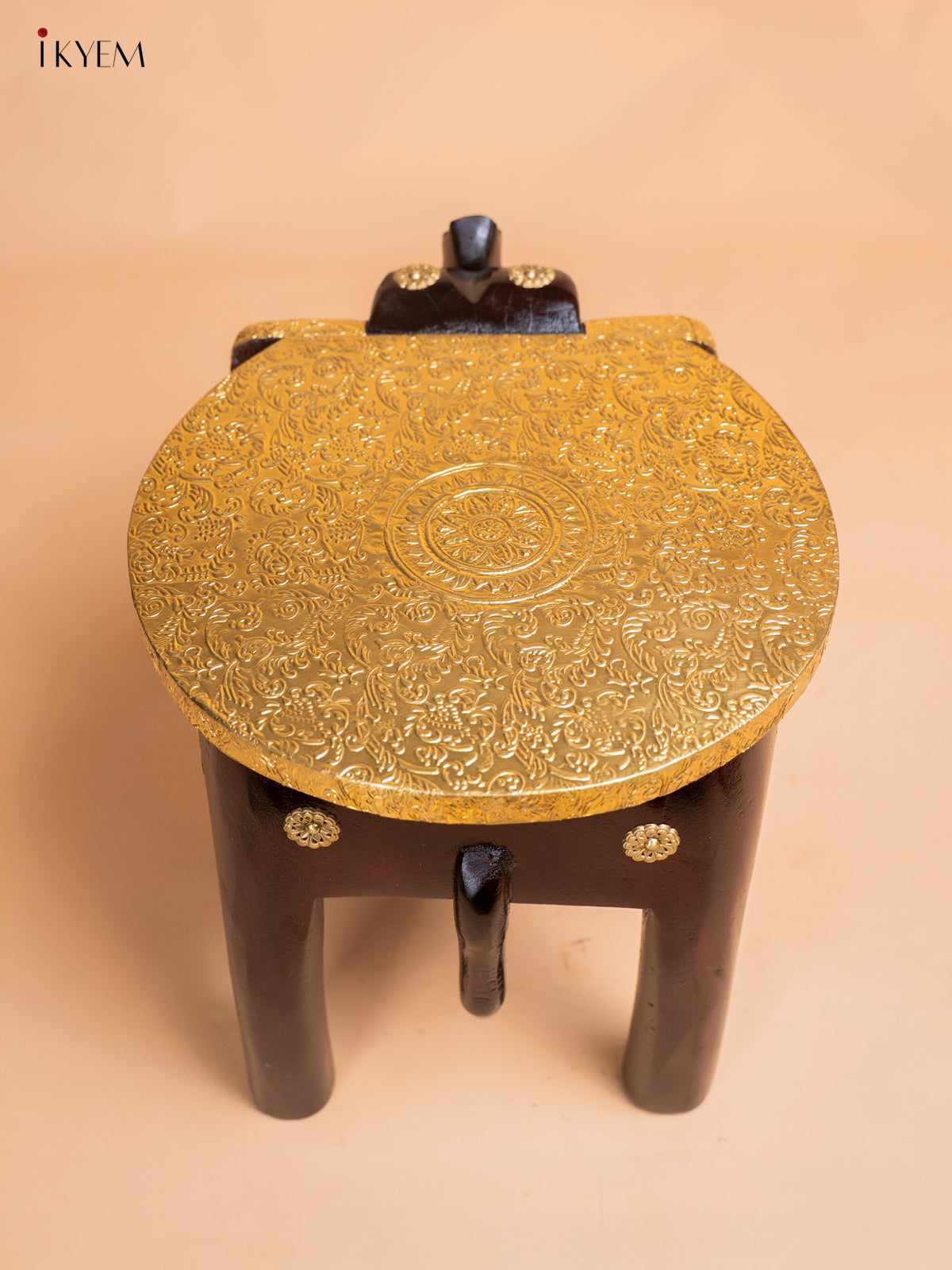 Brass Fitted Elephant Wooden Stool - (15*9) inch - KJ13136