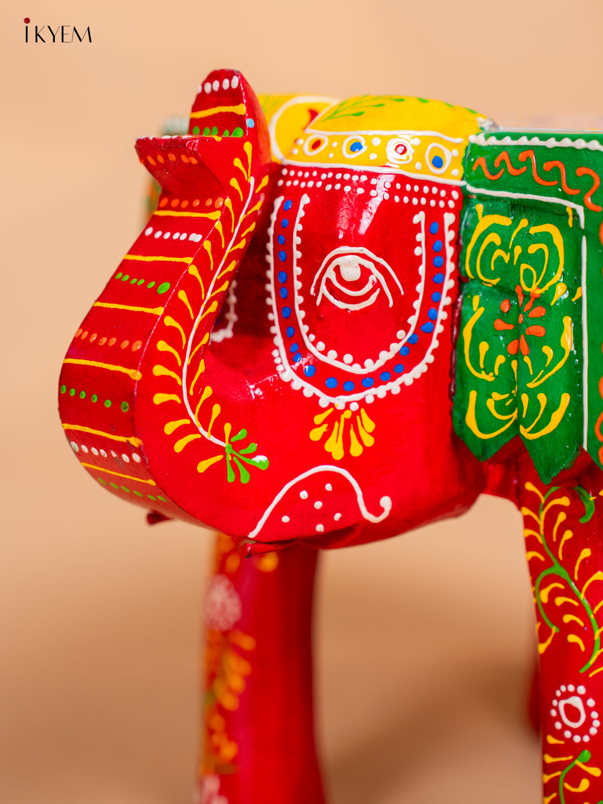 Hand painted Wooden Elephant Stool - Red - 8 Inch - KK05125