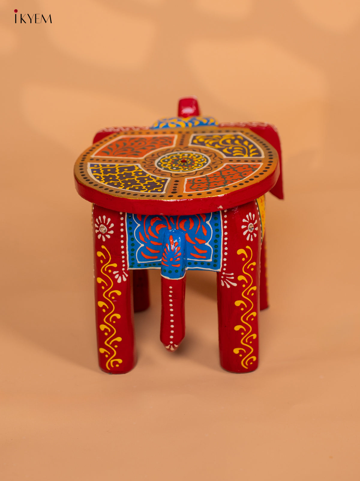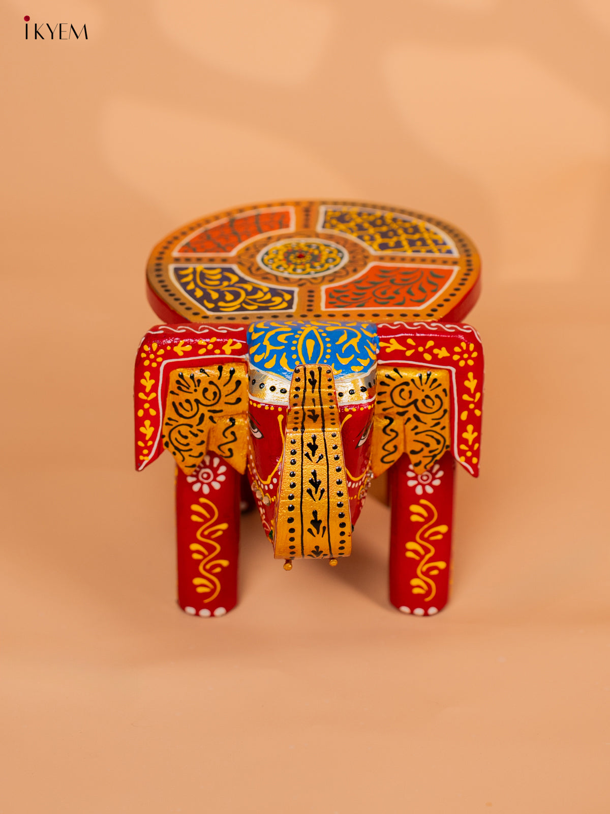 Wooden Hand painted Elephant Stool - Red with Yellow - 6 Inch - KD18155