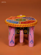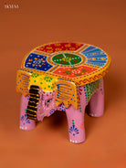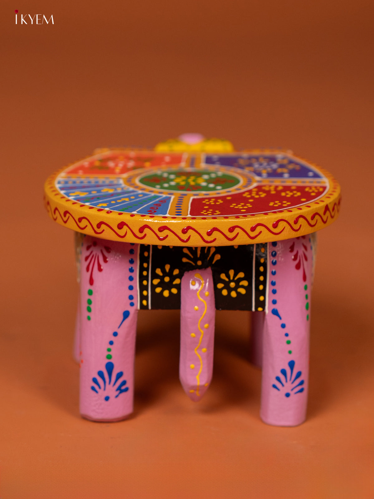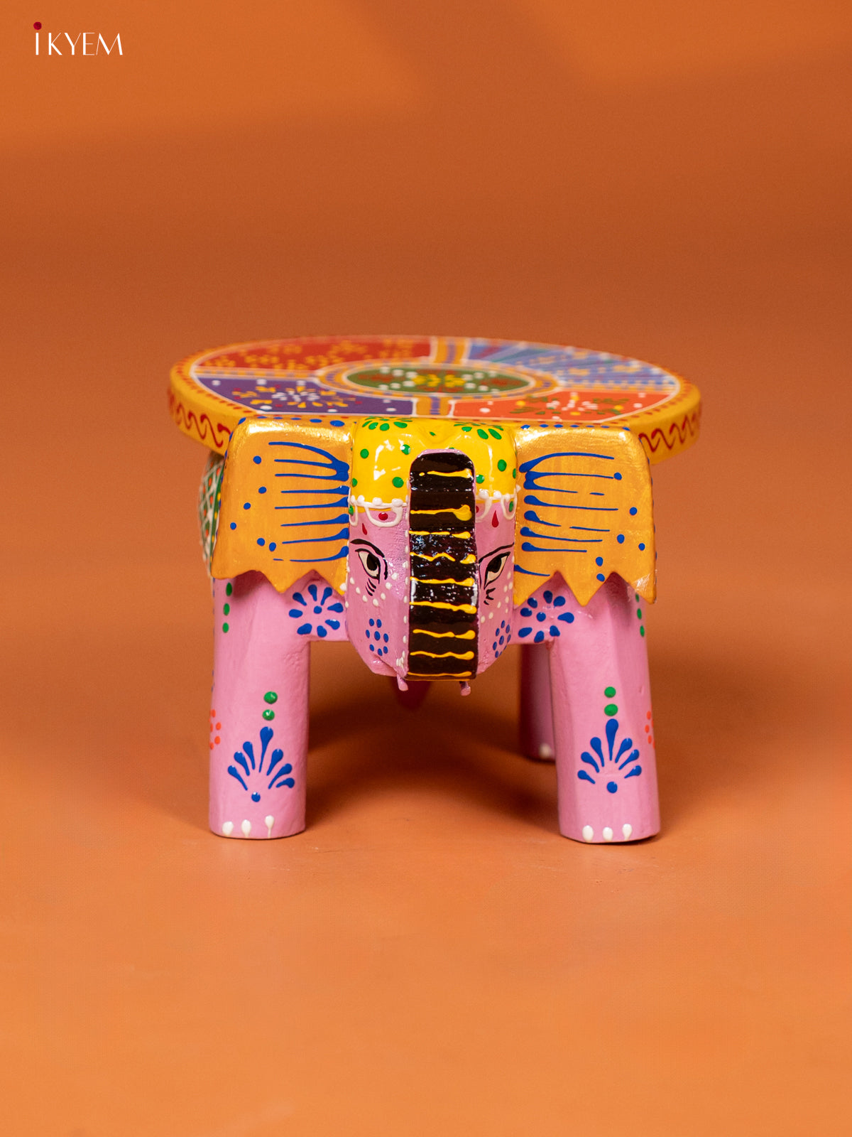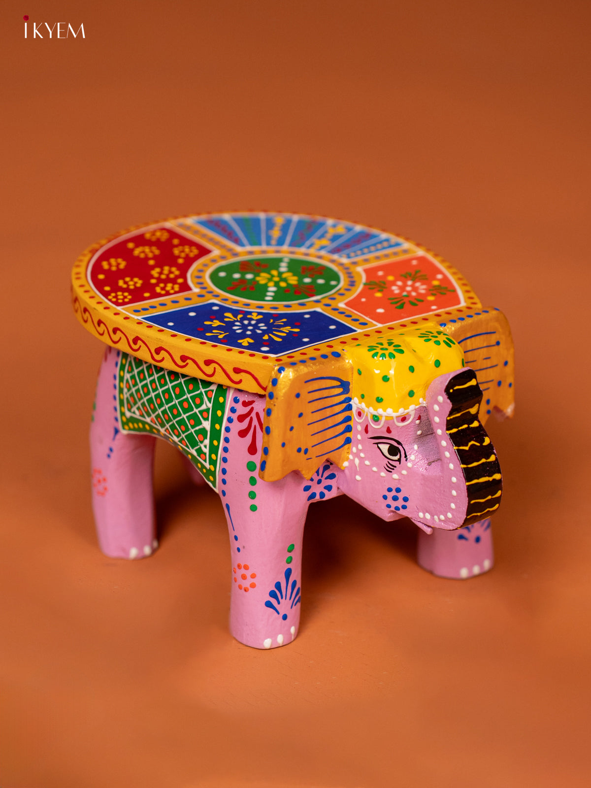 - This 4-inch pink wooden elephant stool features intricate hand-painted details that showcase traditional artistry.