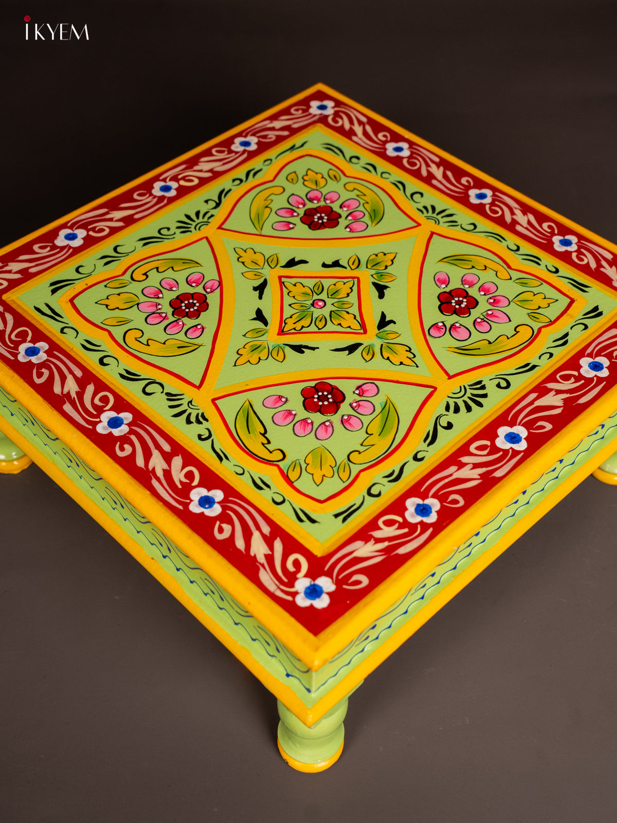 - This Wooden Hand Painted Chowki in Floral green combines traditional craftsmanship with elegant floral designs, creating a stylish and unique piece for your home decor.