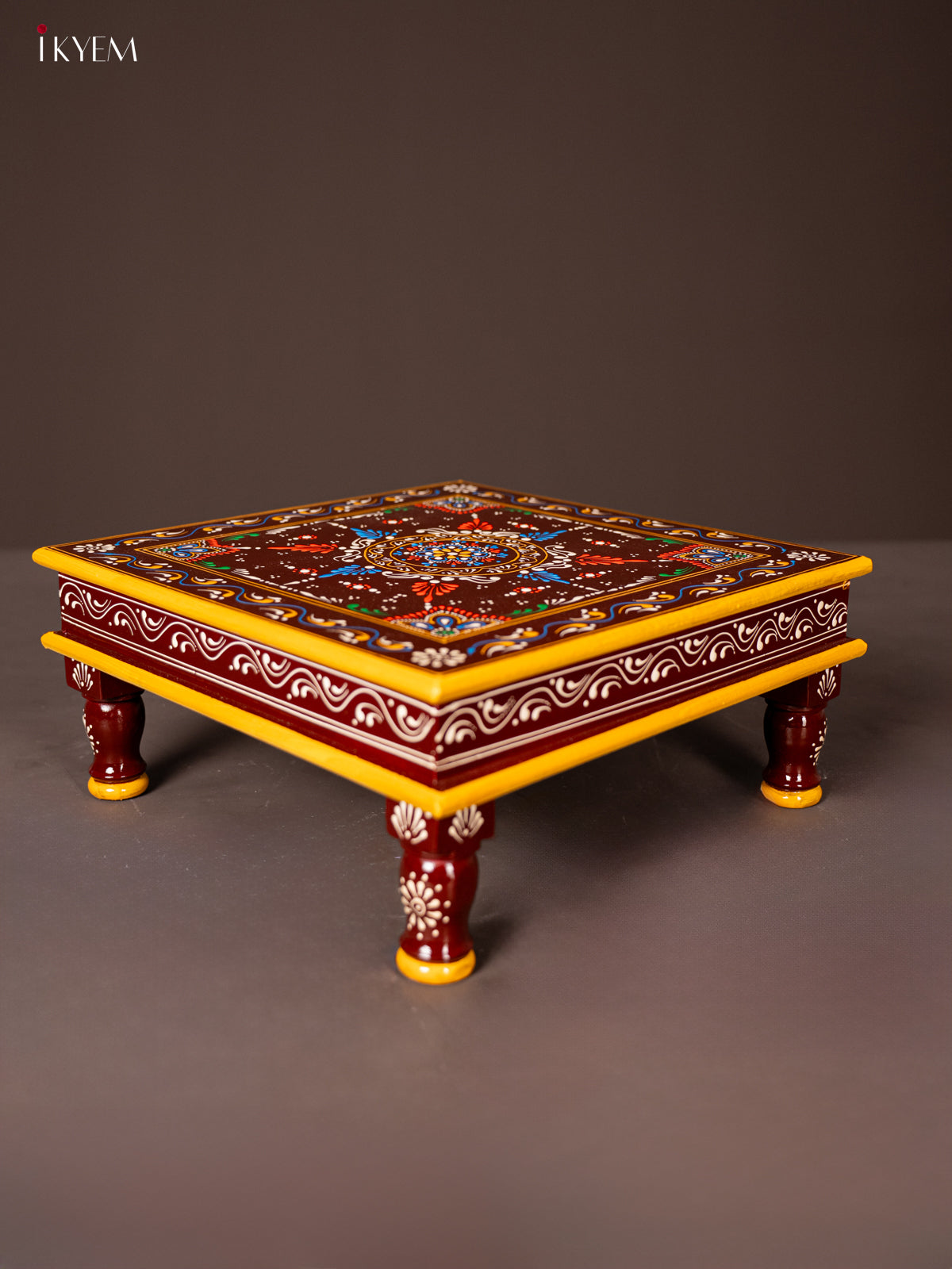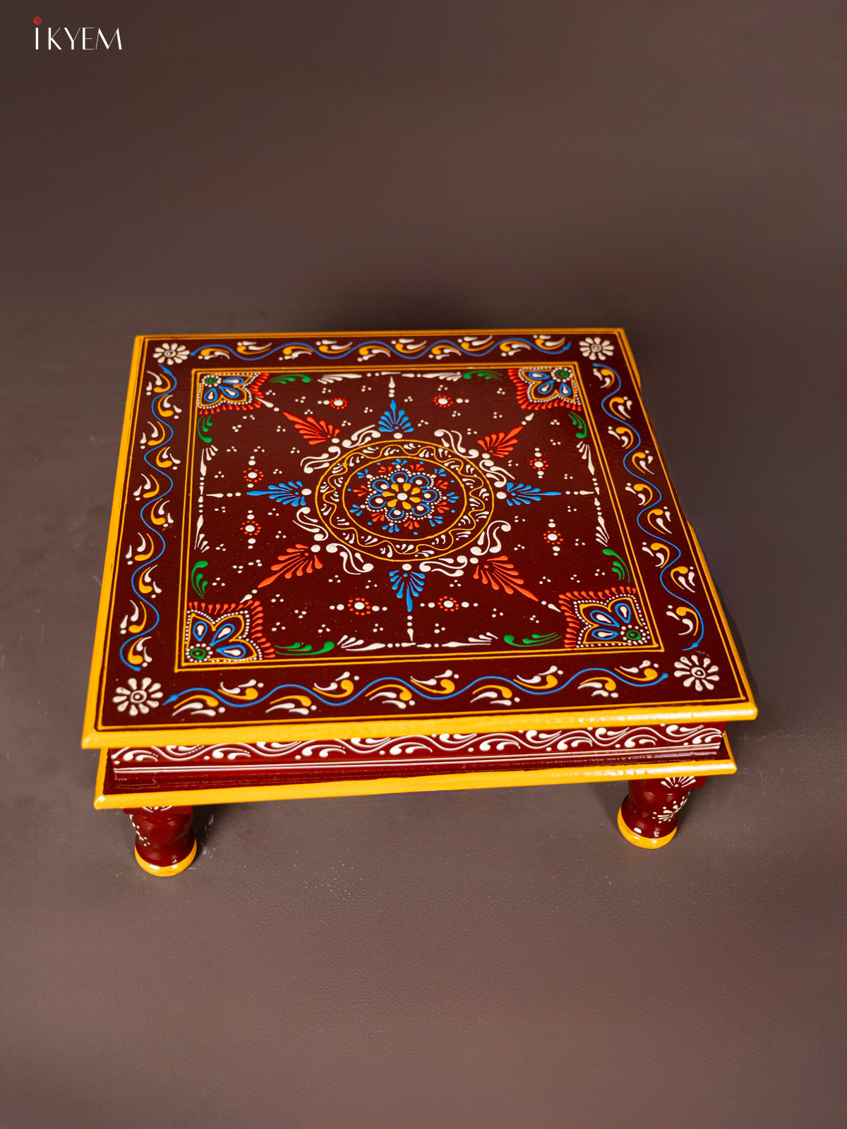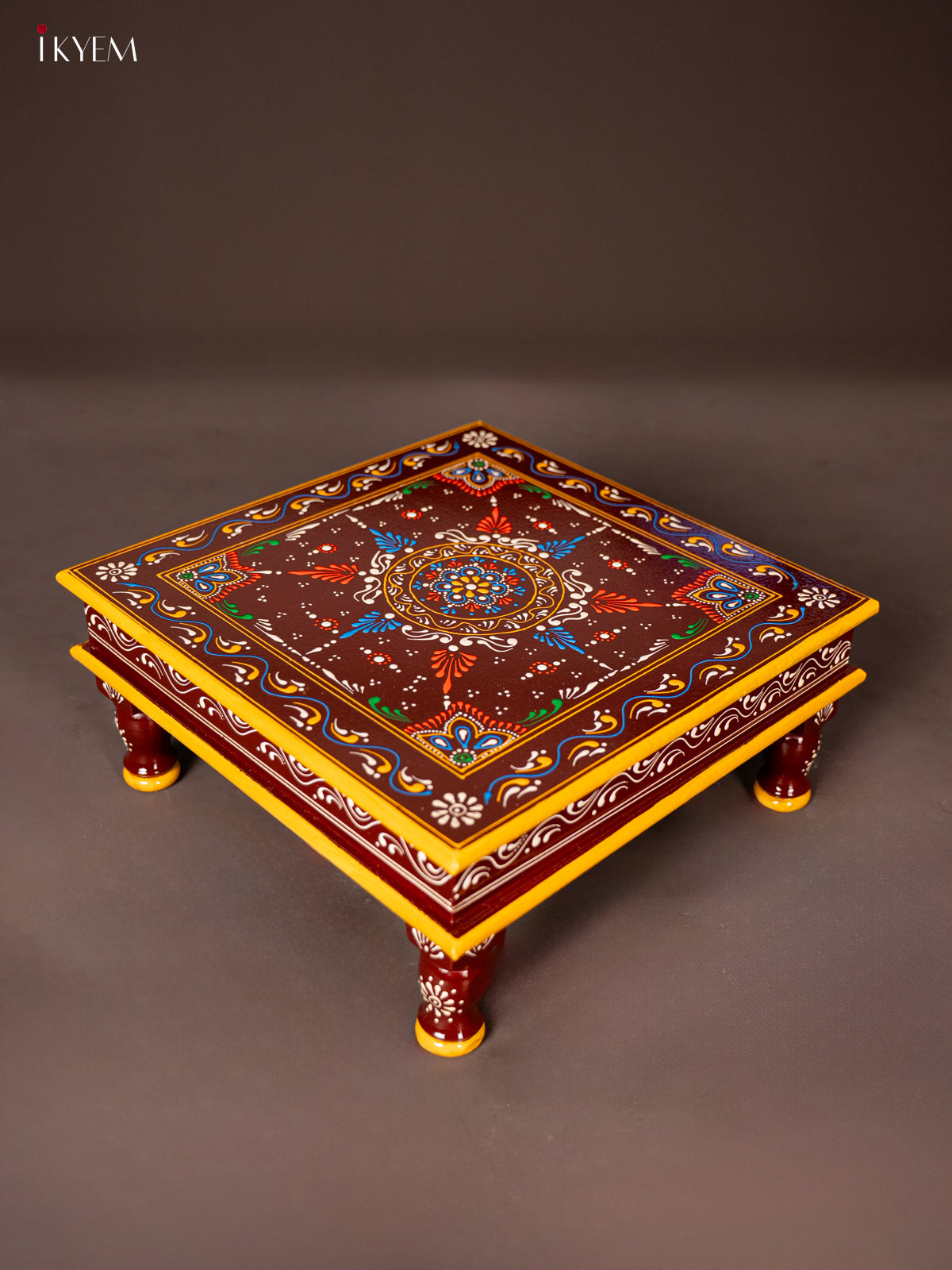 - This 15-inch Wooden Hand Painted Manai/Bajot Stand in brown is ideal for pooja rituals and enhances any home decor with its traditional craftsmanship.