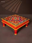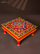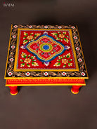 Wooden Hand Painted Manai/Bajot - Red 15 Inches - KG16115