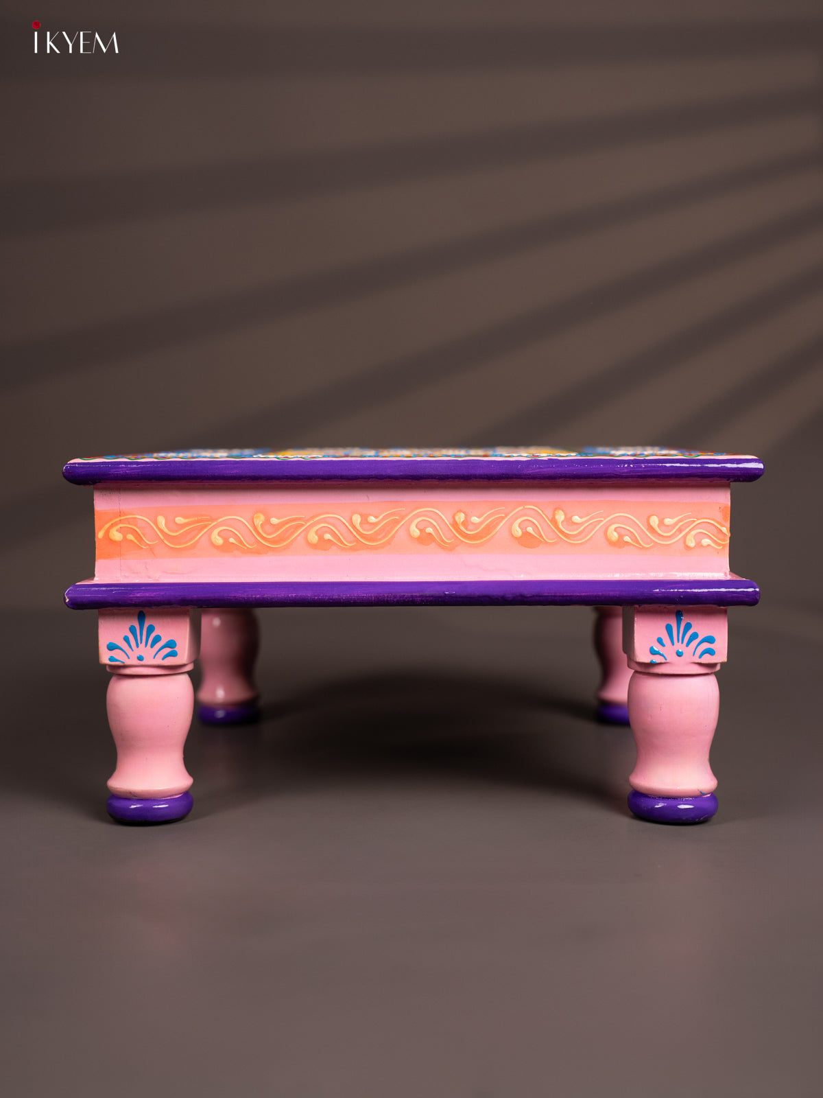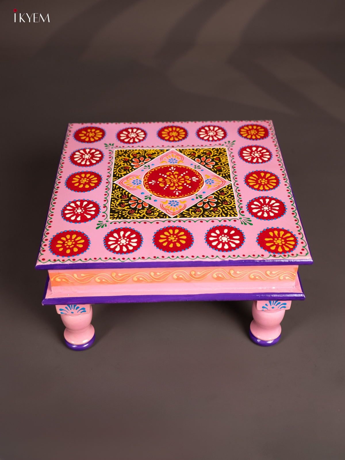 Wooden Hand Painted Manai/Bajot Stand - Baby Pink 12 inch - KG16122