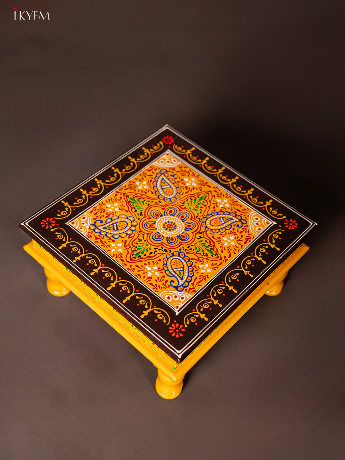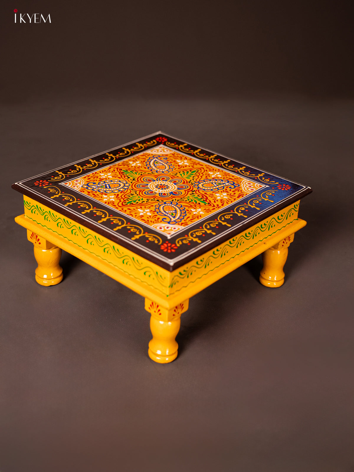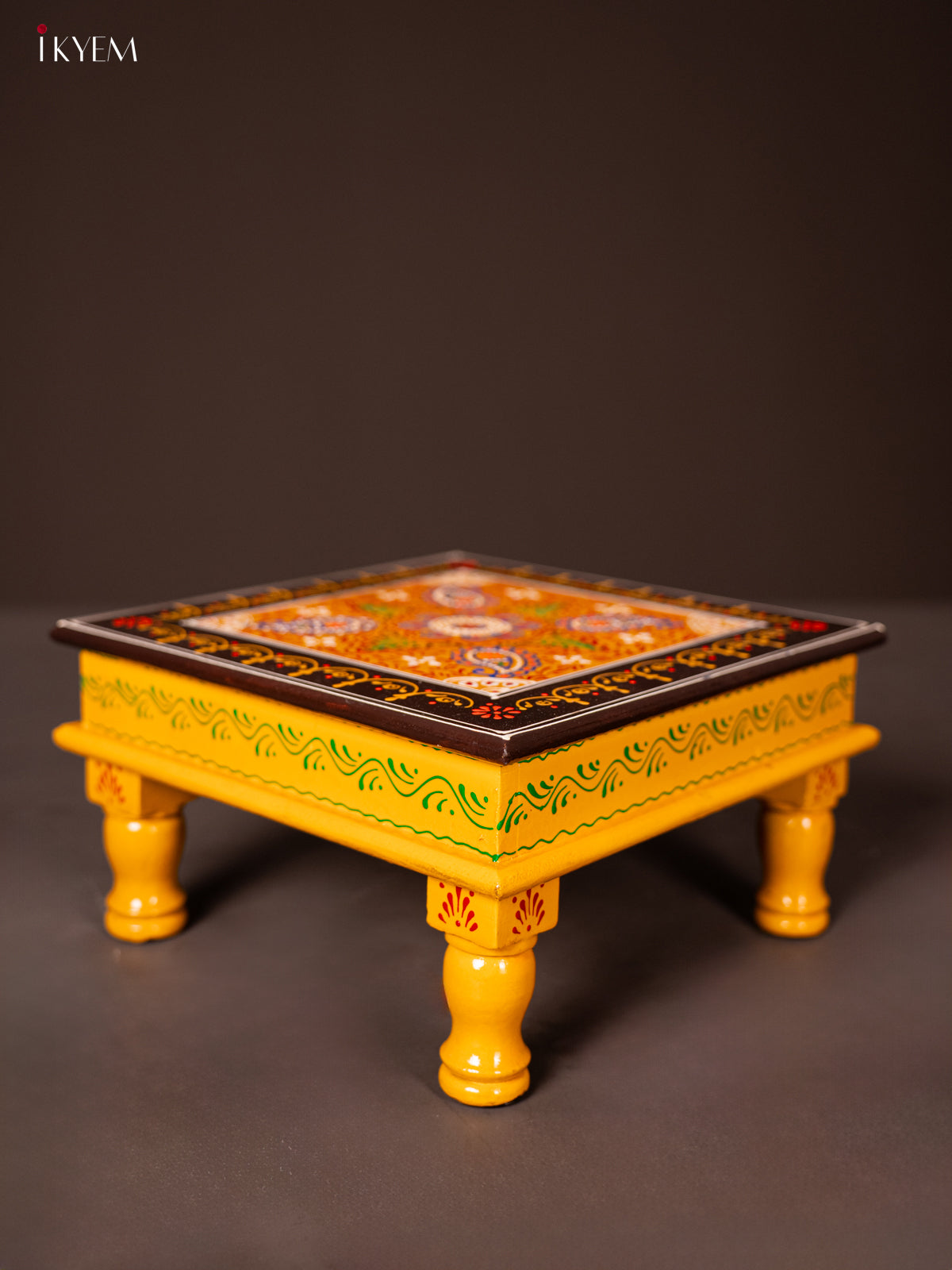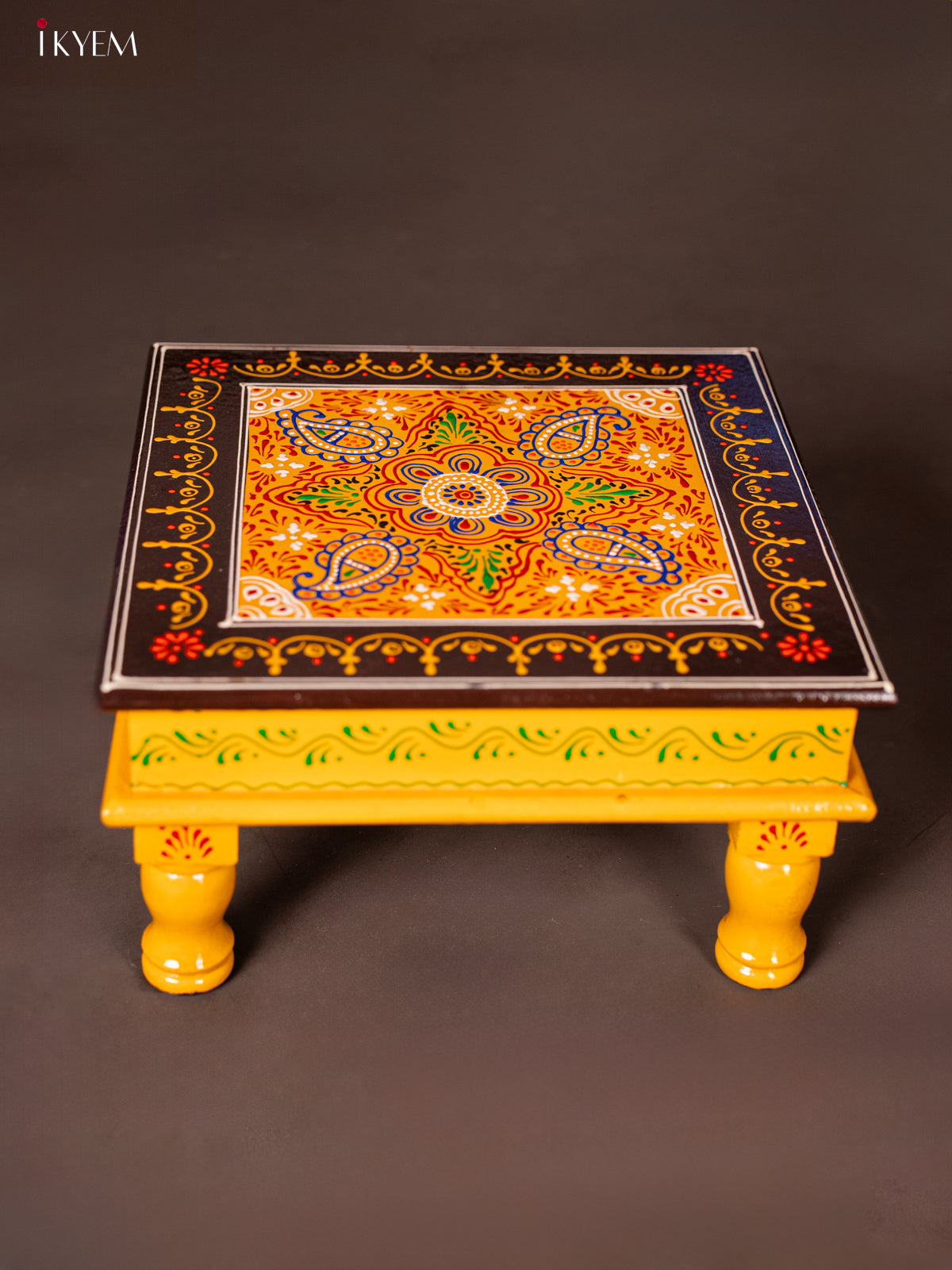 Wooden Hand Painted Manai/Bajot Stand - Yellow 12 Inches - KG16125