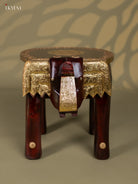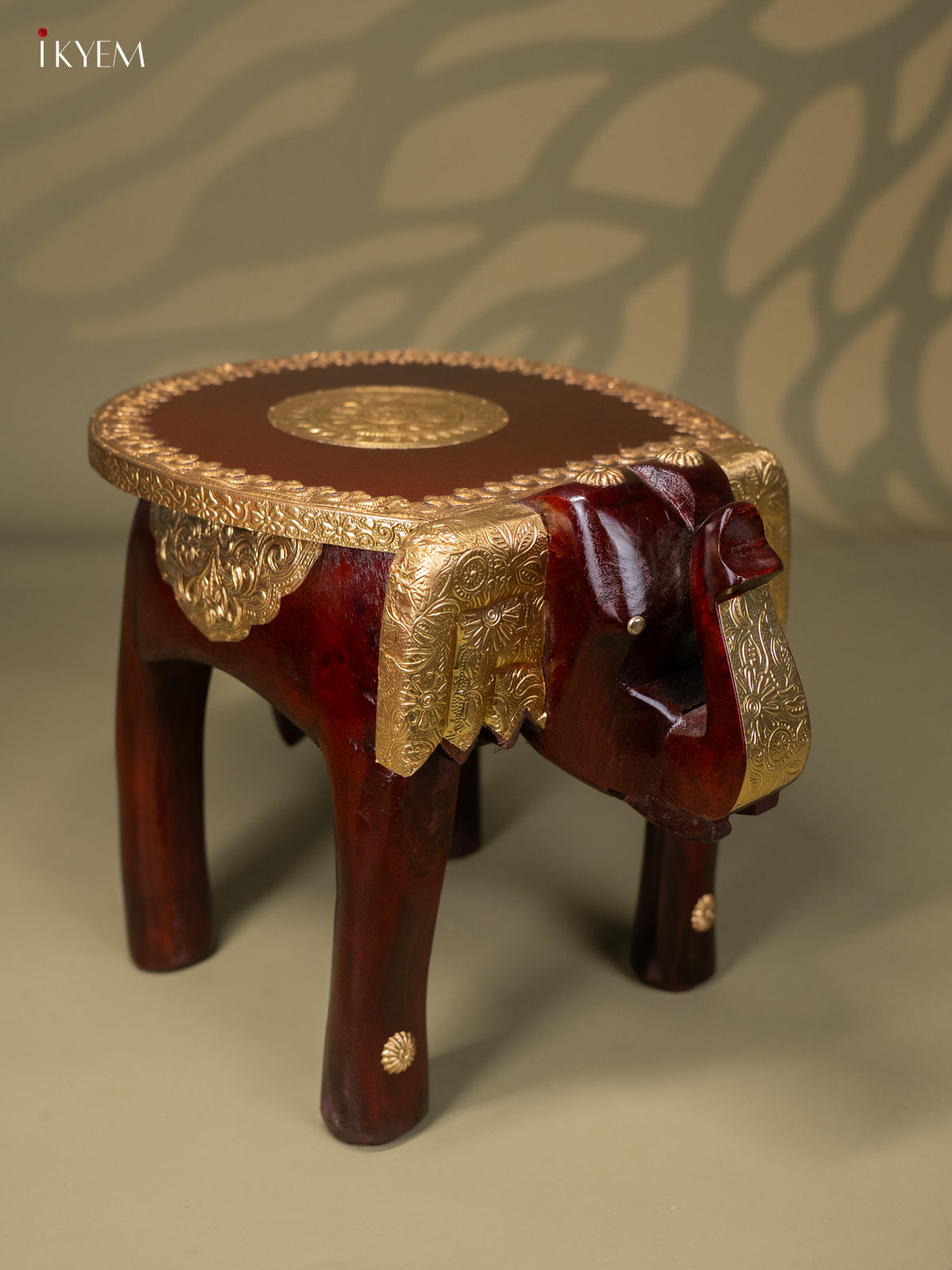 Brass Fitted Elephant Wooden Stool - (15*9) inch - KJ13136