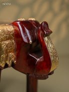 • Crafted with precision, this Brass Fitted Elephant Wooden Stool, combining sturdy wood with detailed brass fittings.