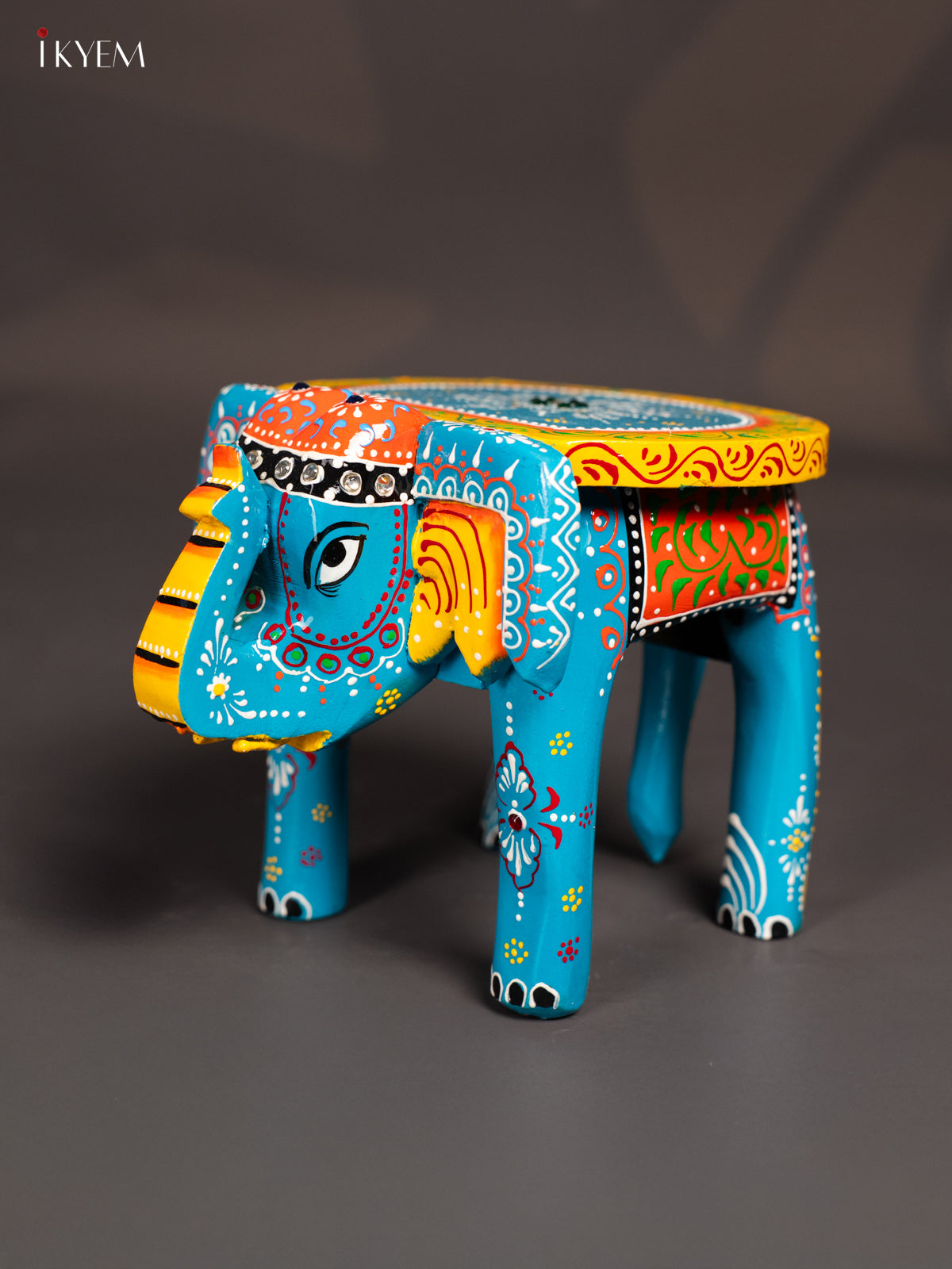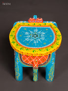 Wooden Hand painted Elephant Stool - Sky blue - 6 Inch