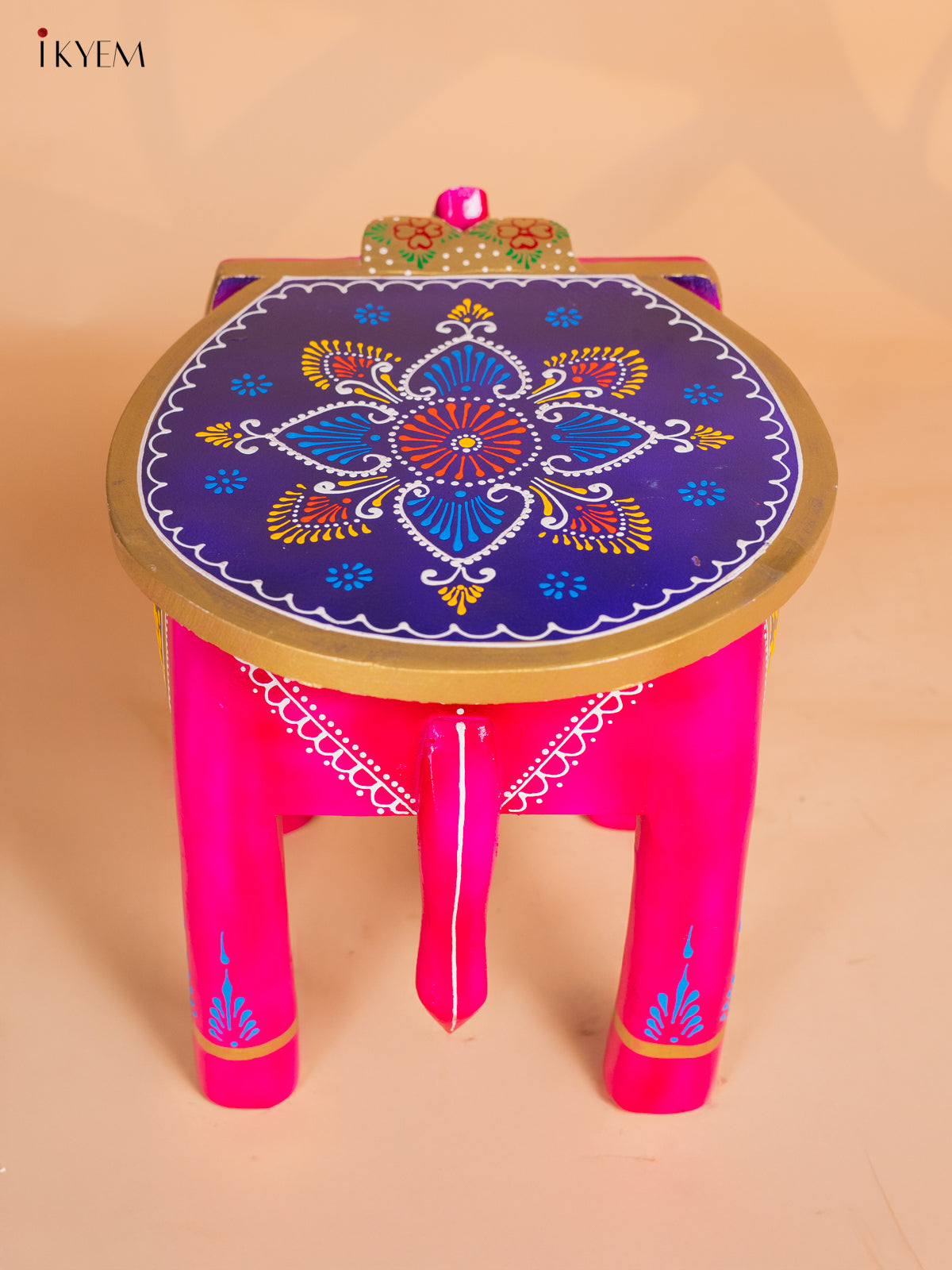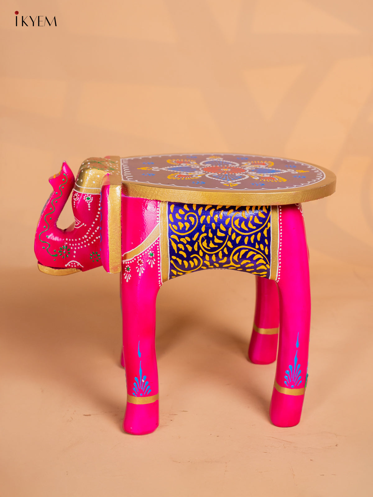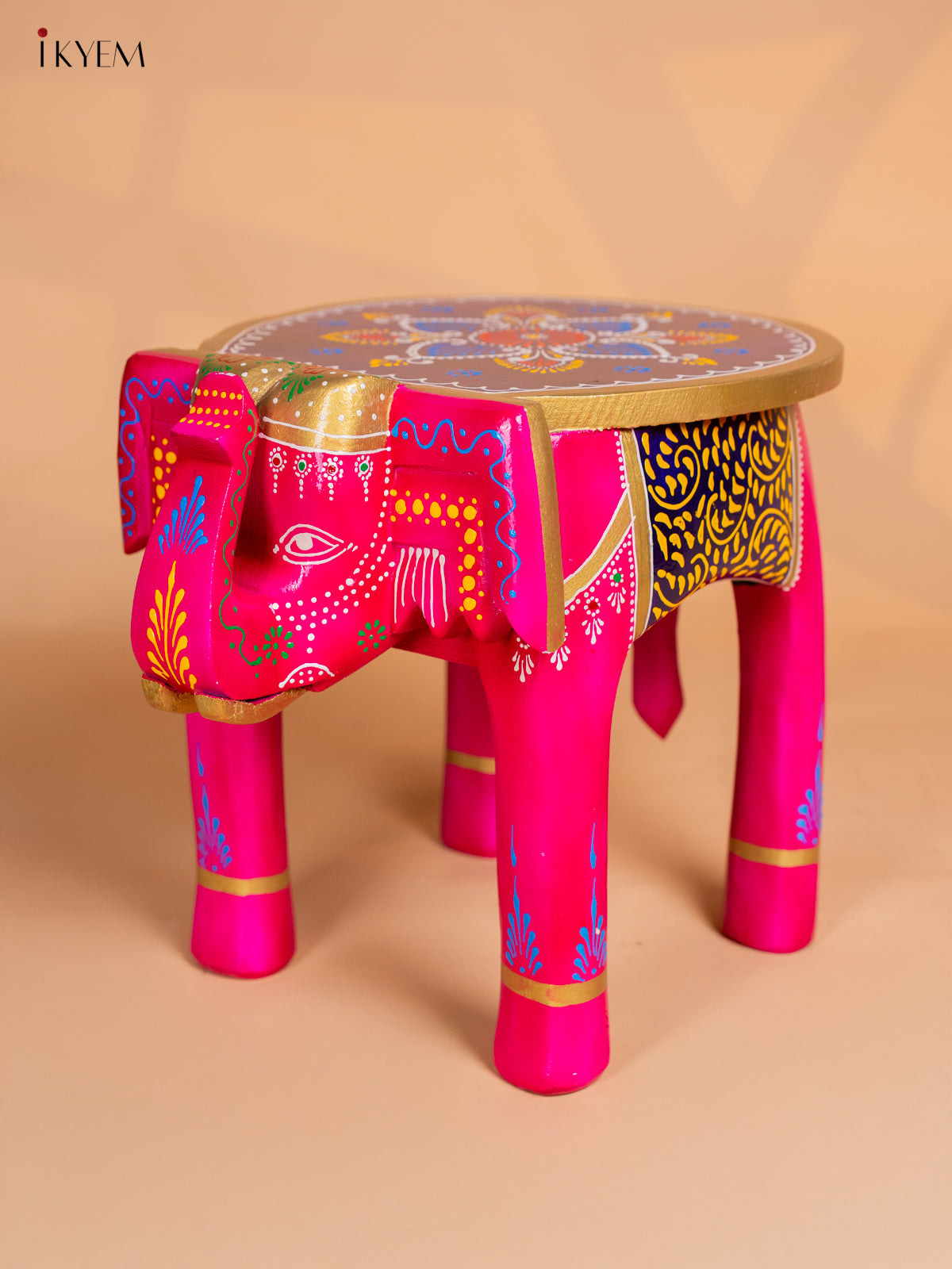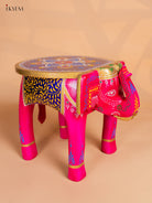 Wooden Hand Painted Elephant Stool - Pink - 12 Inch