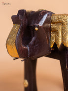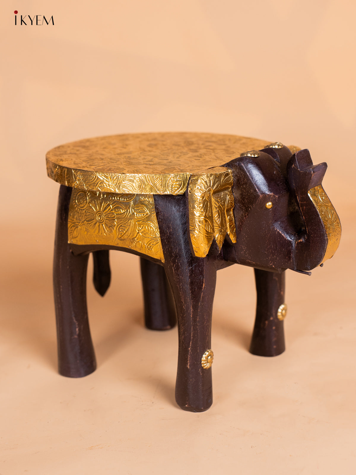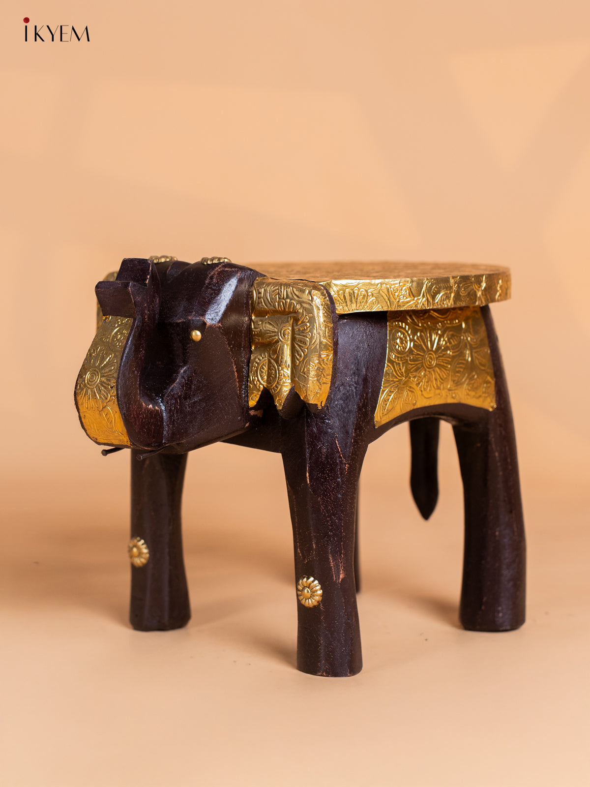 - Crafted with precision, this Brass Fitted Elephant Wooden Stool, combining sturdy wood with detailed brass fittings.