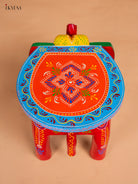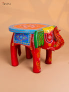 Hand painted Wooden Elephant Stool - Red with Blue - 8 Inch - KK05124