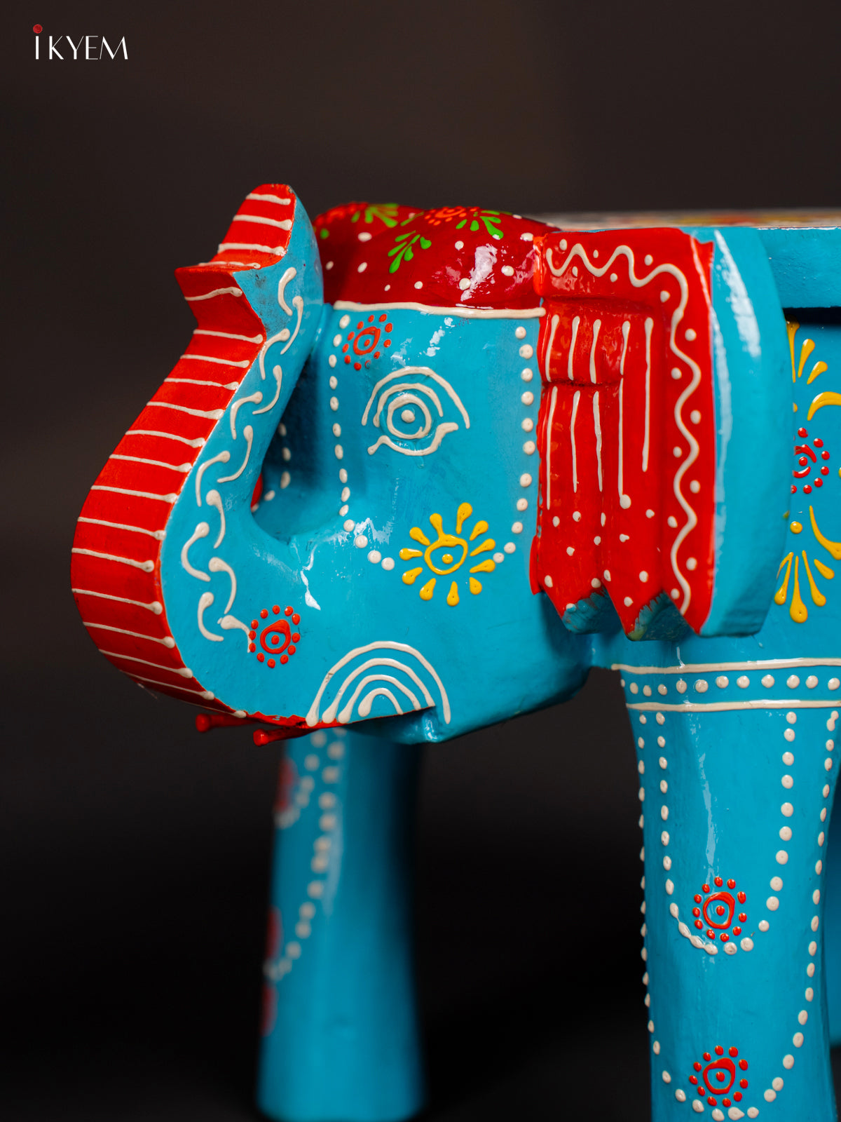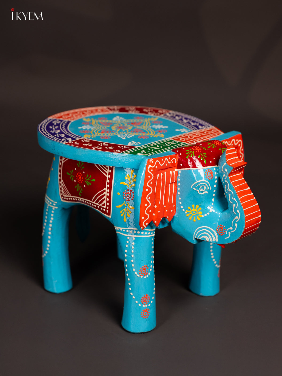 - Brighten your home décor with this stunning 8-inch hand-painted wooden elephant stool in vibrant blue.