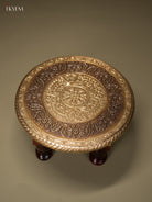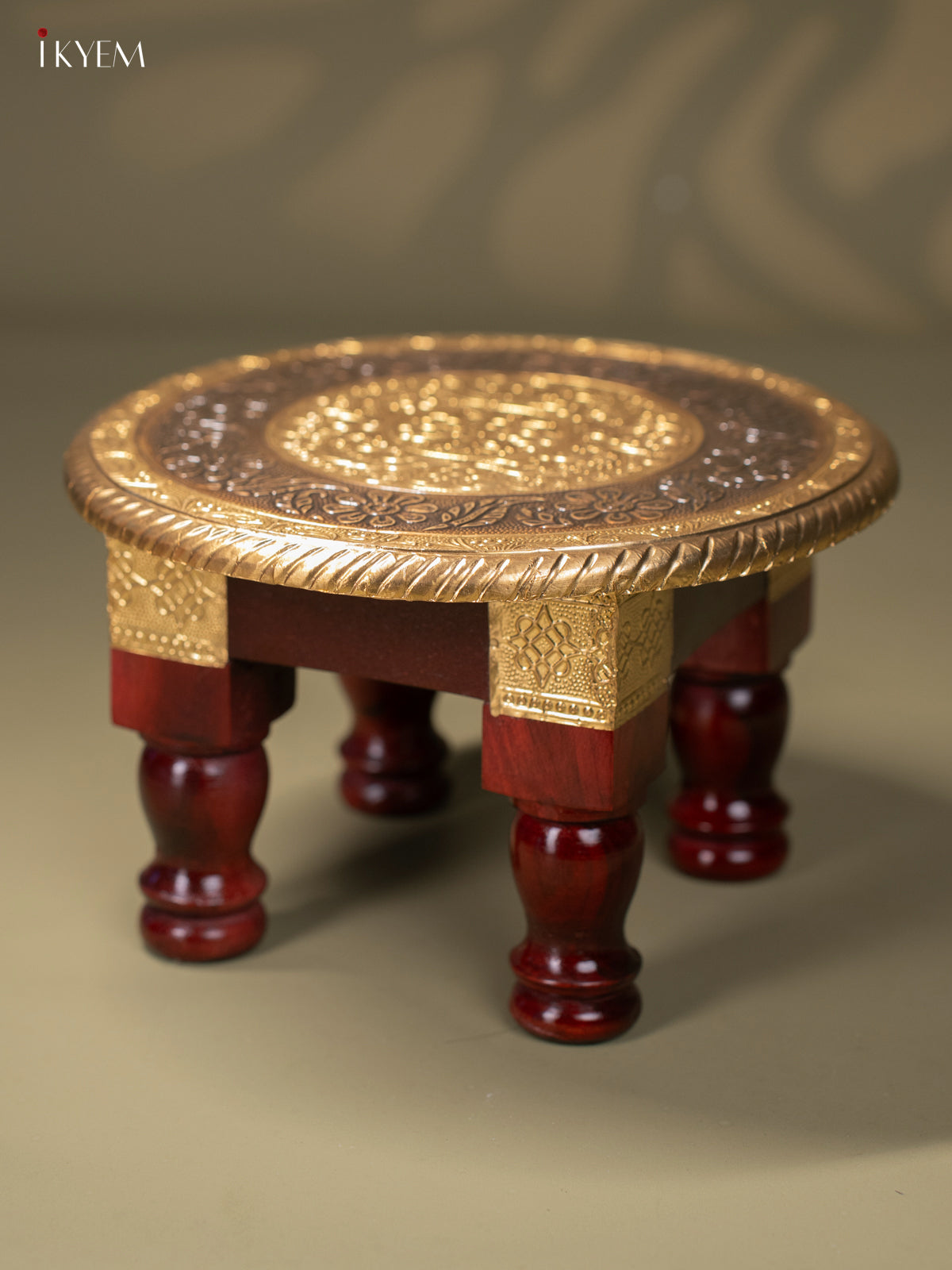 Brass Fitted Round Wooden Stool - 10 inch - KL31116