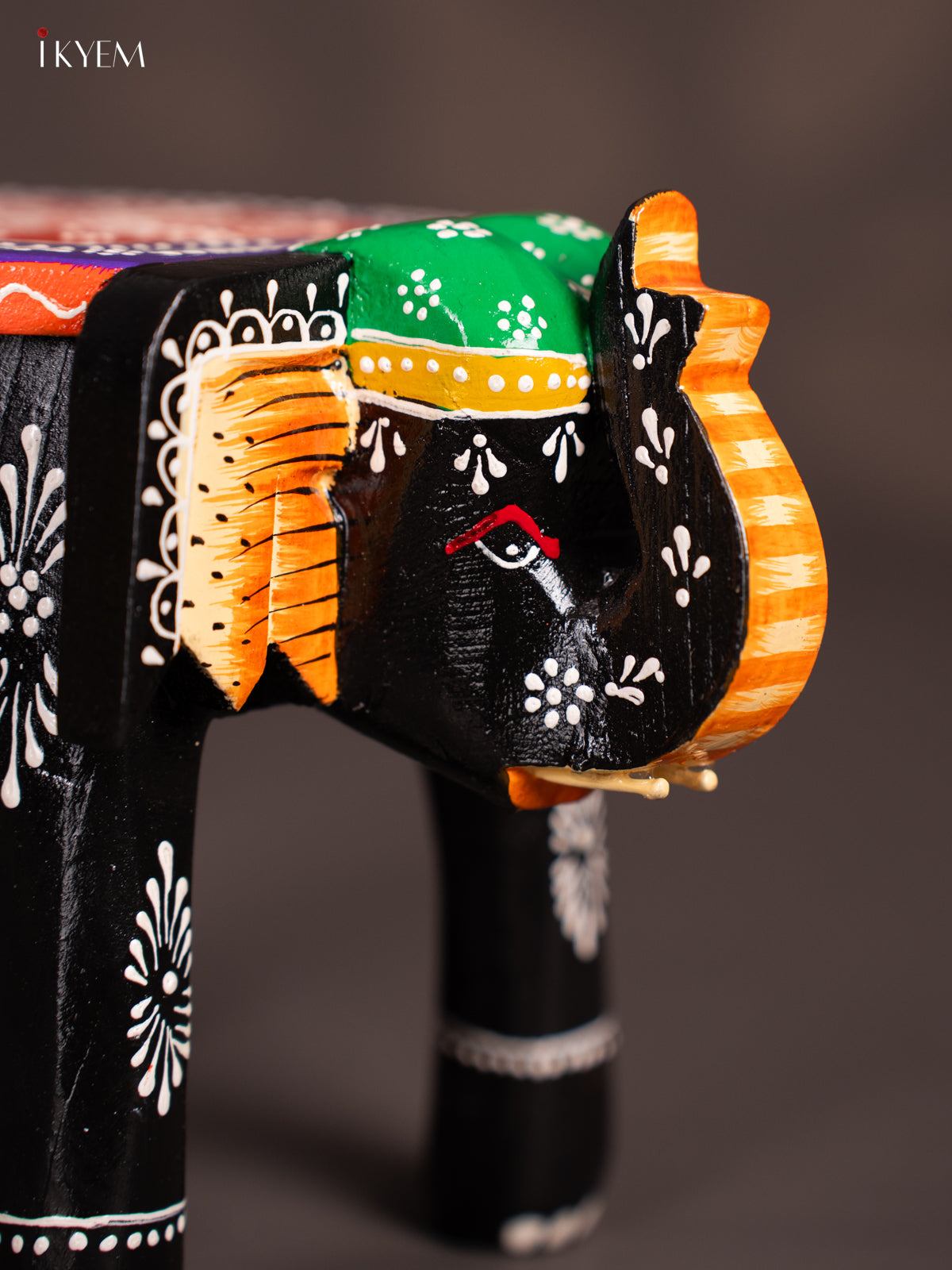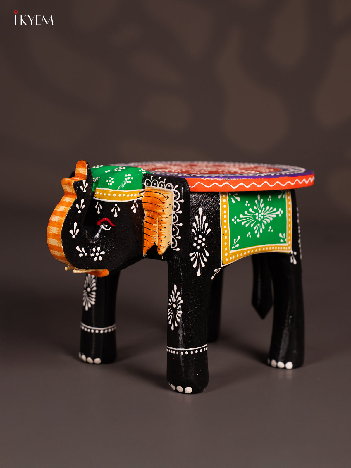 Hand-Painted Wooden Elephant Stool - Black - 6 Inches - KN06118