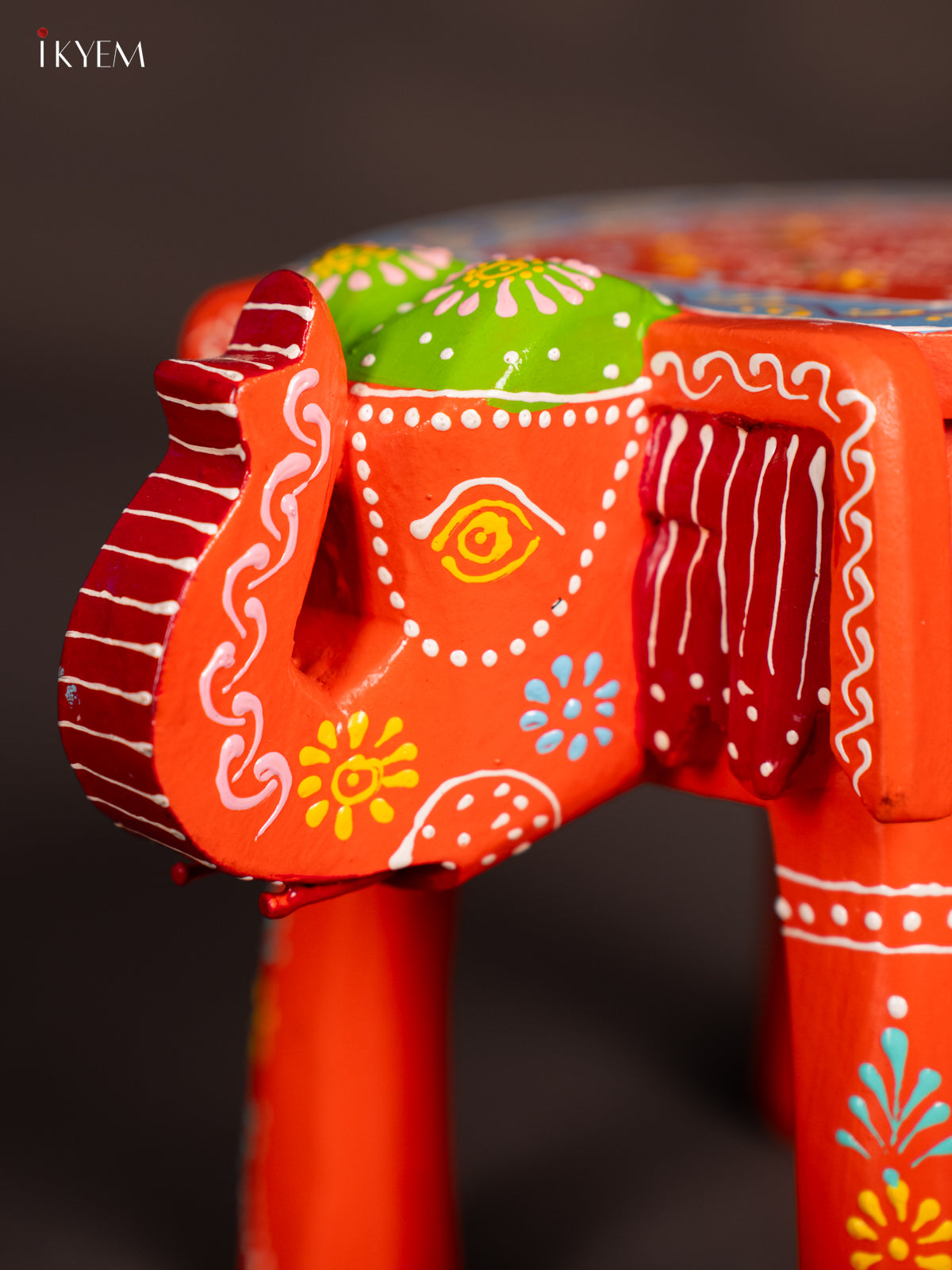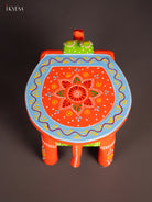 Hand-Painted Wooden Elephant Stool - Orange - 6 Inches -KN06120