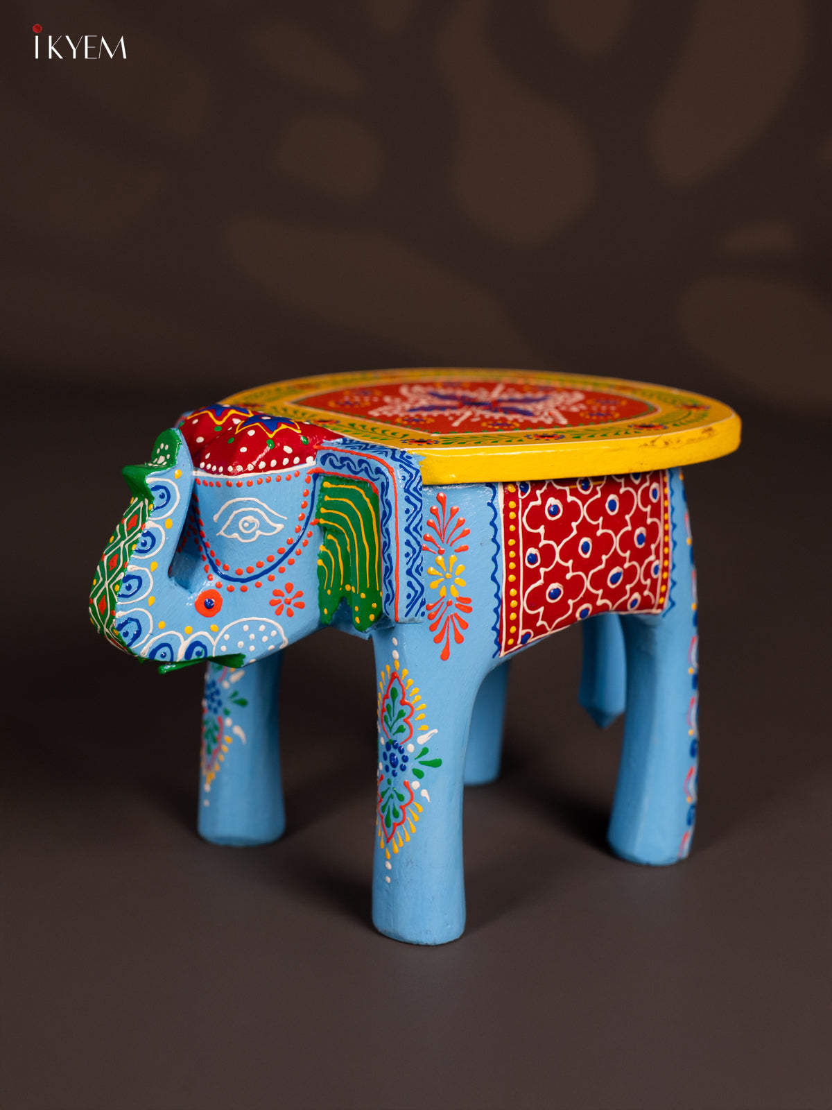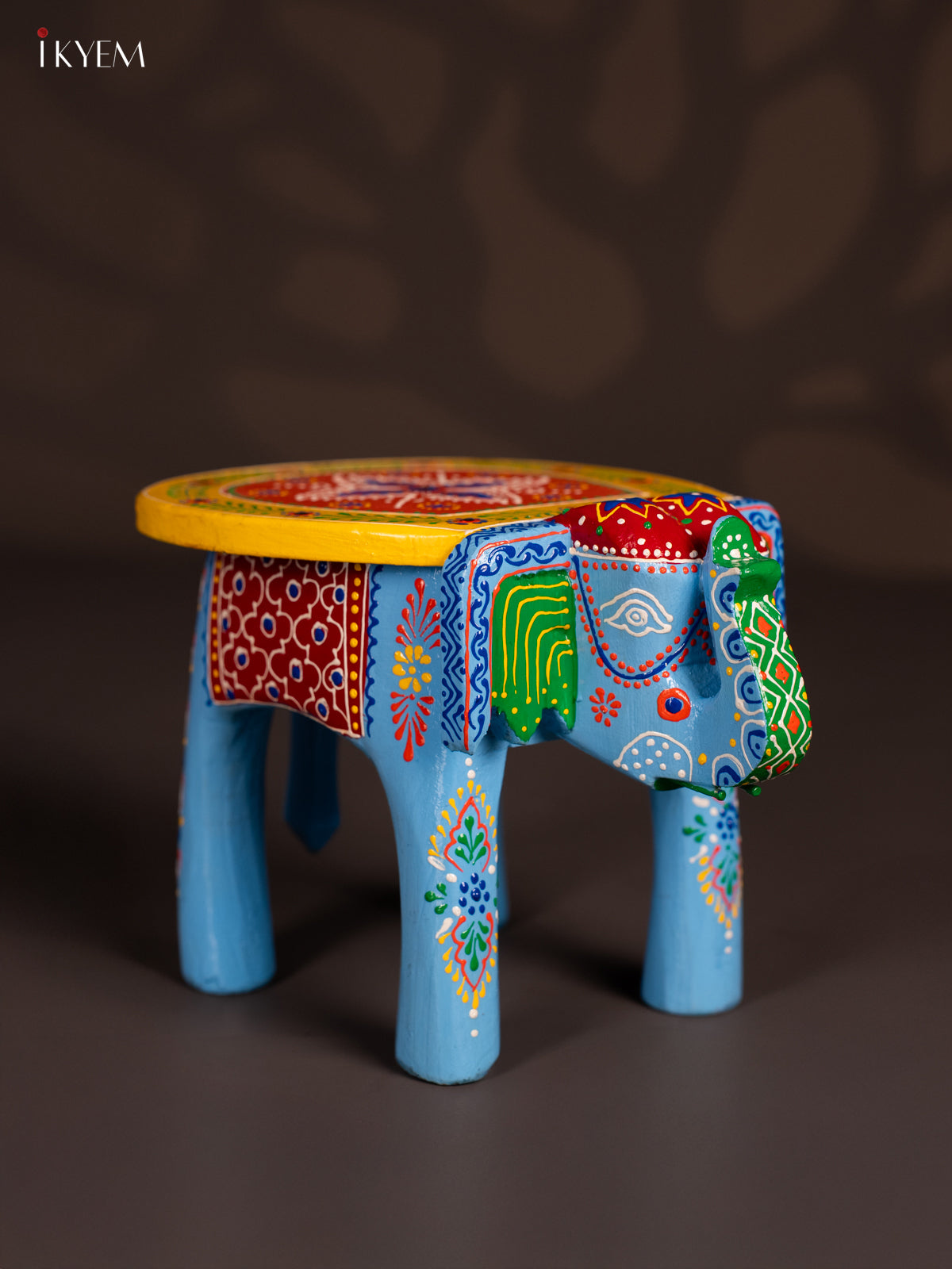 Hand-Painted Wooden Elephant Stool - Sky Blue - 6 Inches - KN06121
