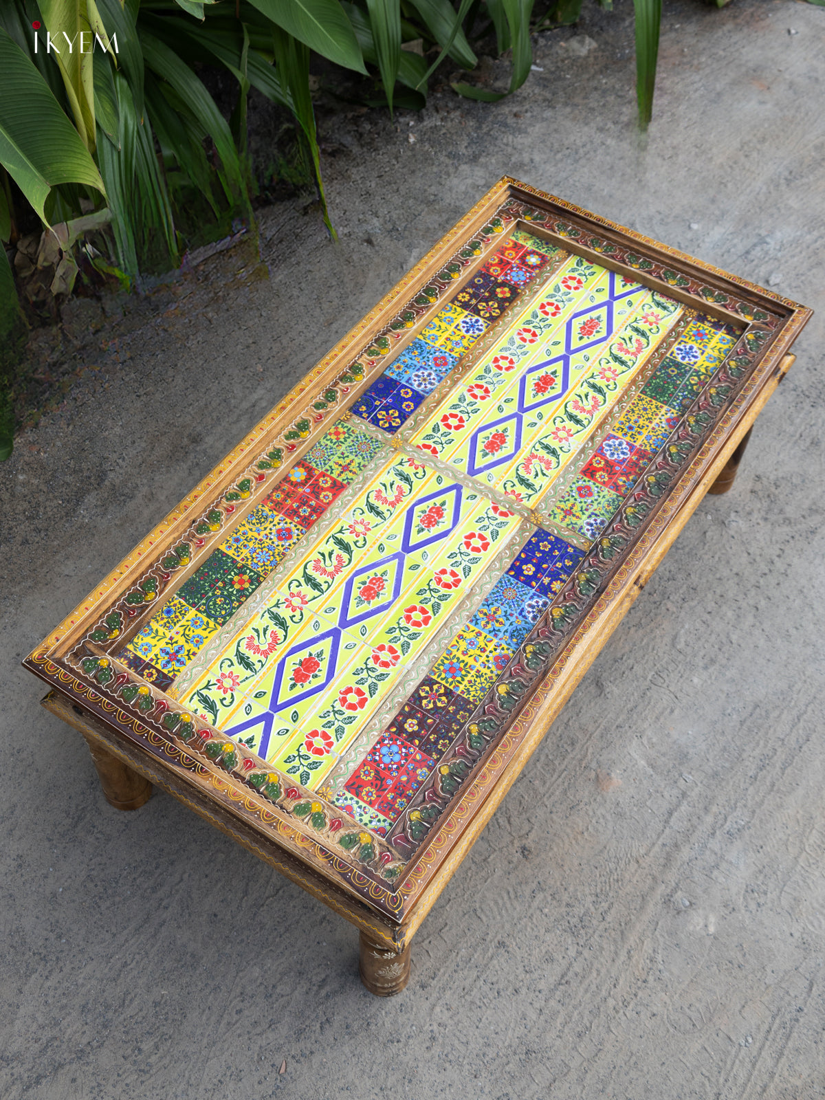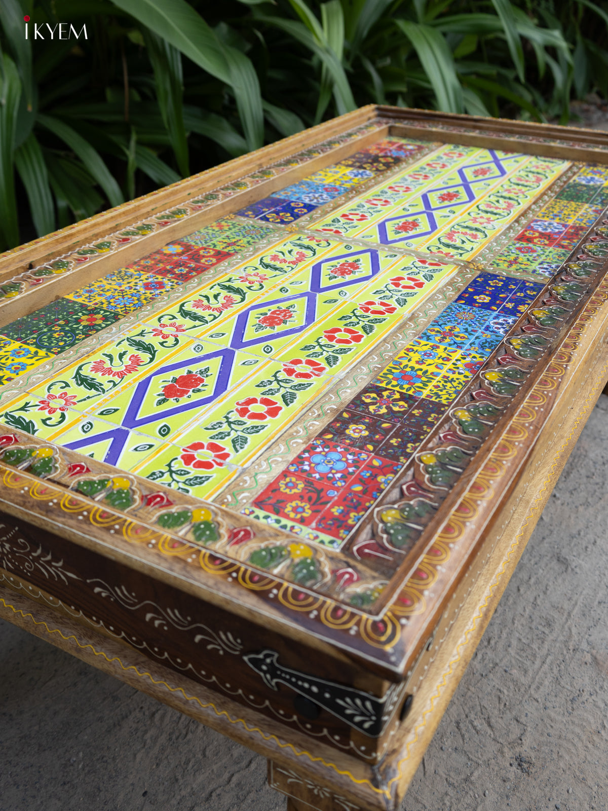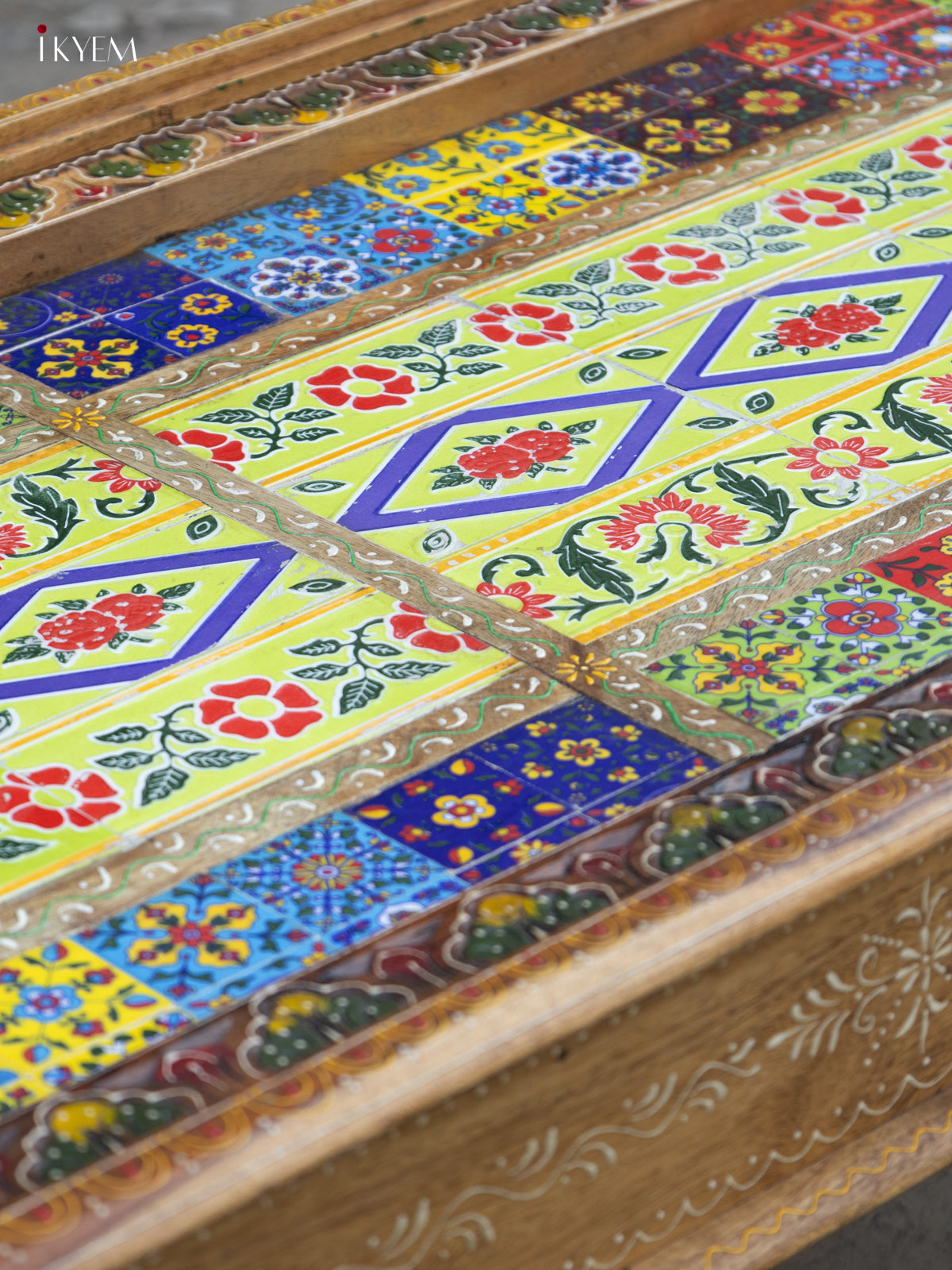 Hand Painted Wooden Table with Tile inlay - (17.3× 46.8) Inch - 4JJ04039