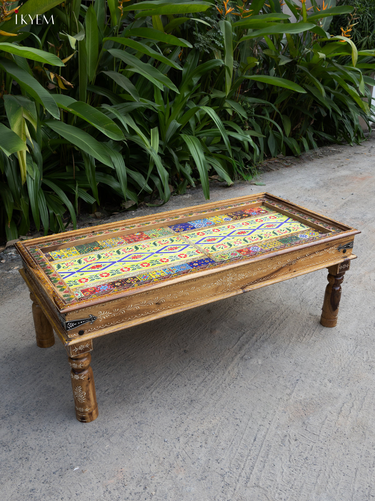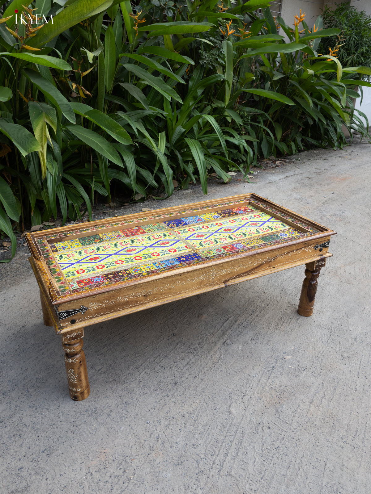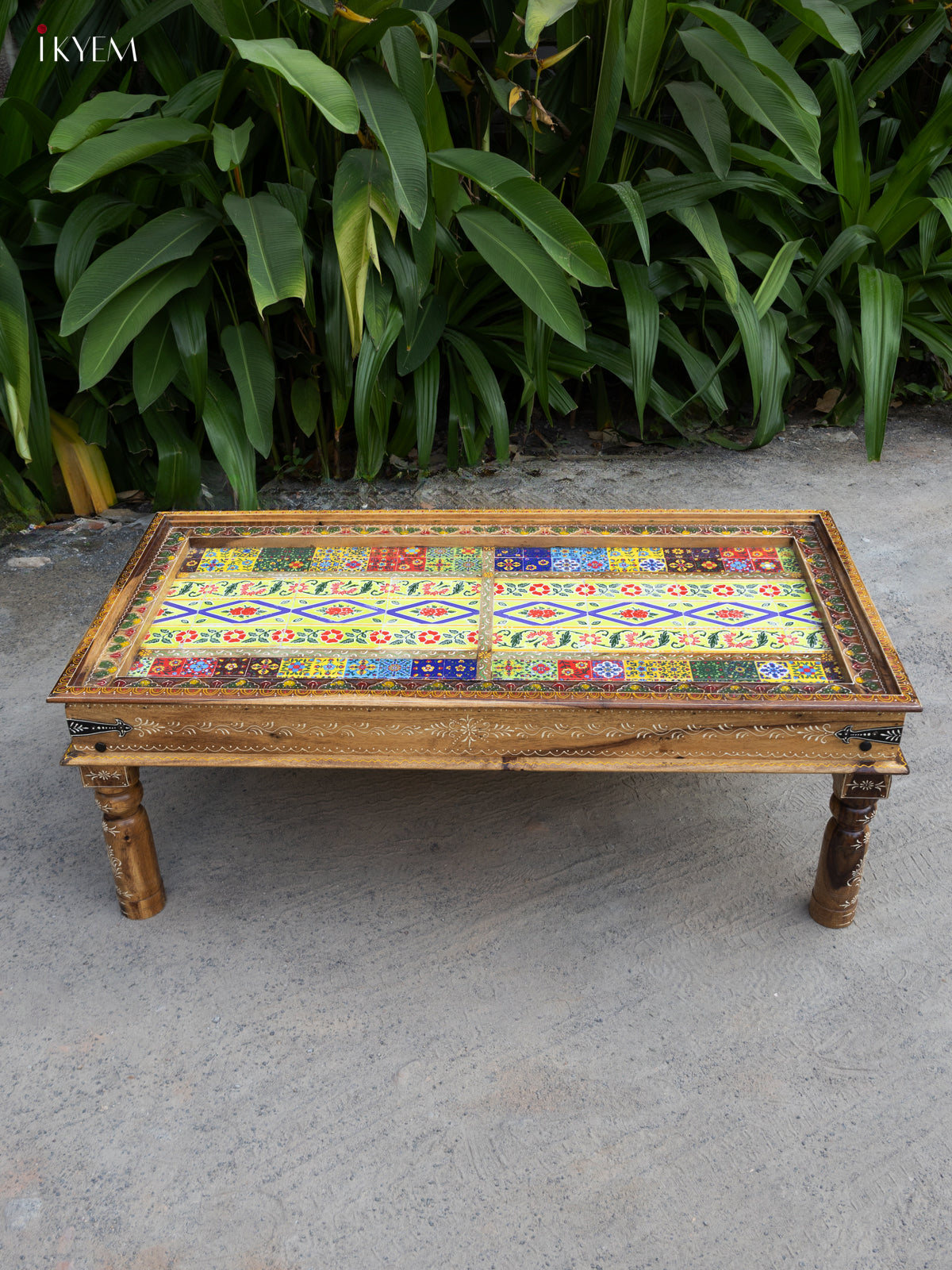 Hand Painted Wooden Table with Tile inlay - (17.3× 46.8) Inch - 4JJ04039