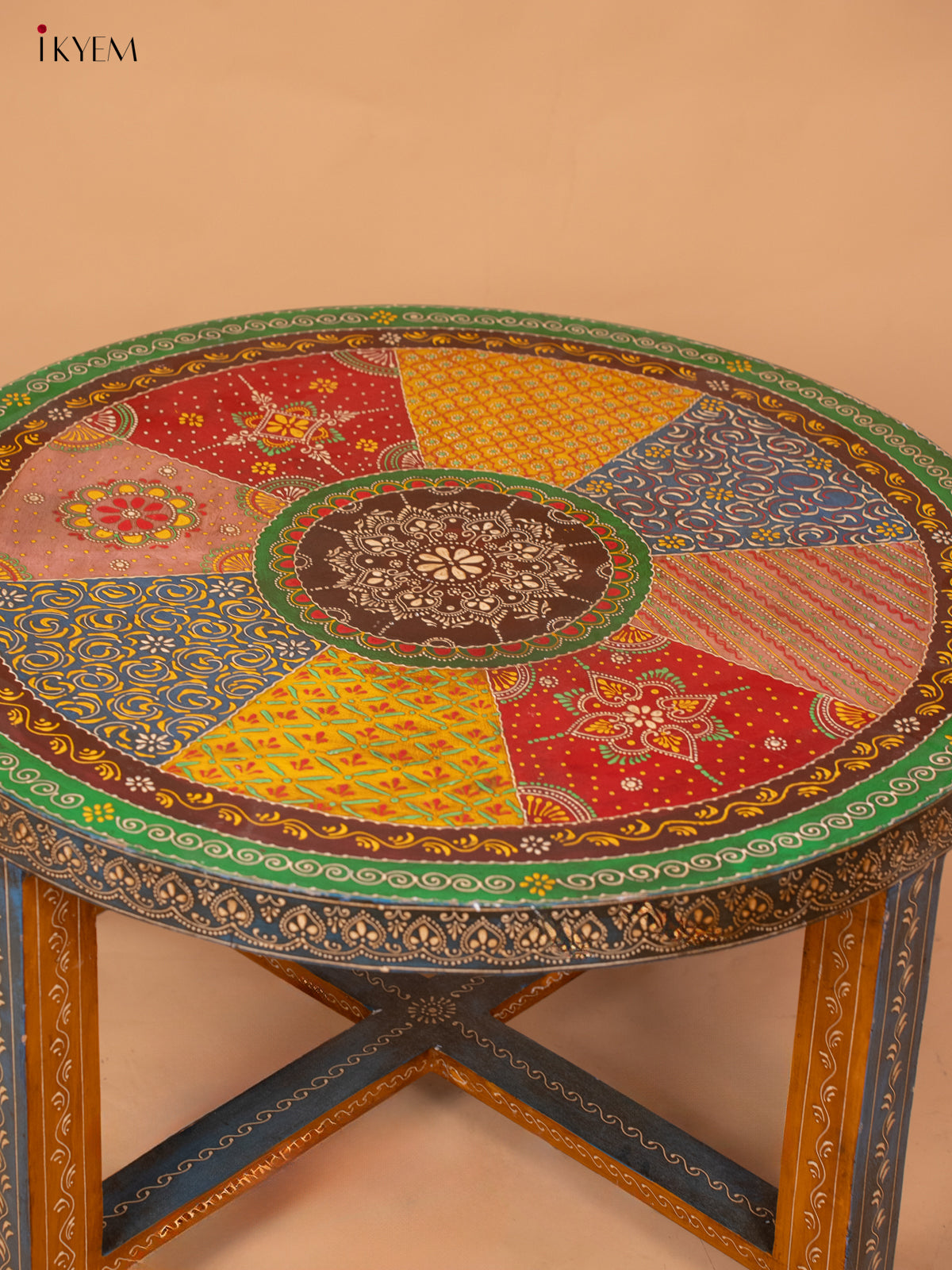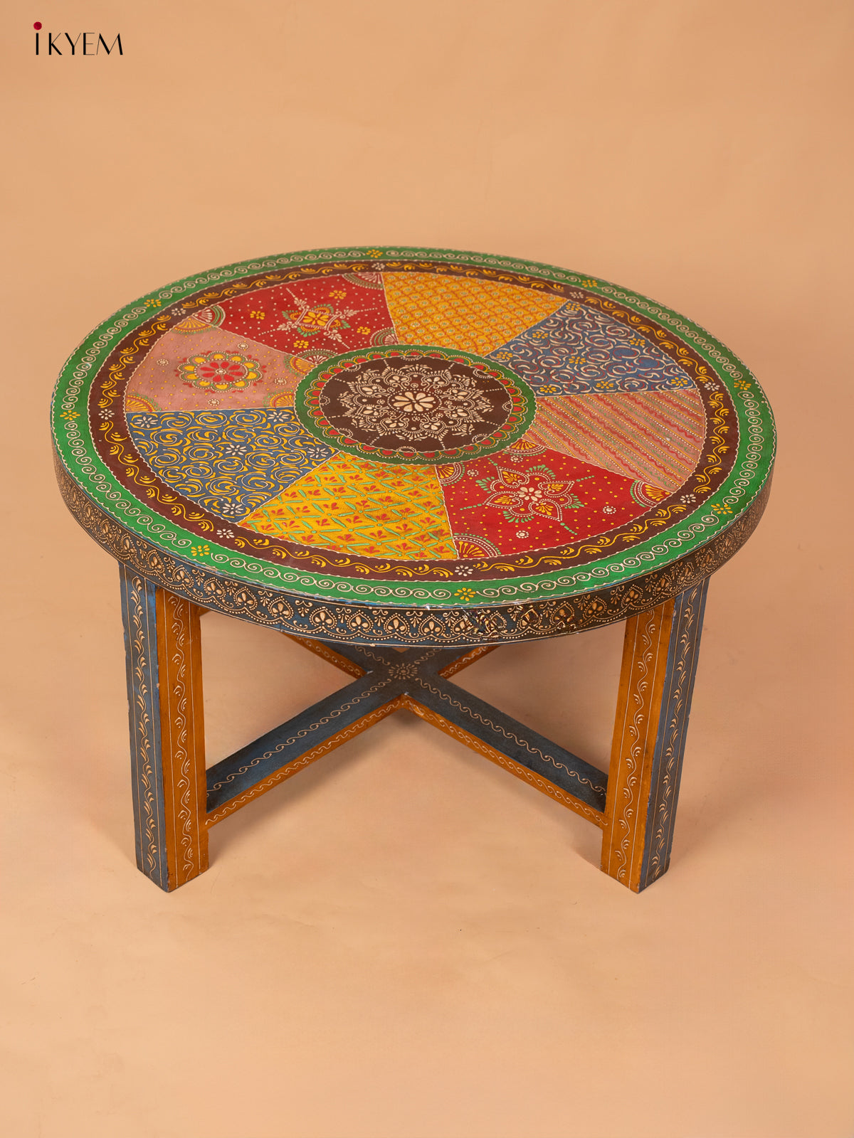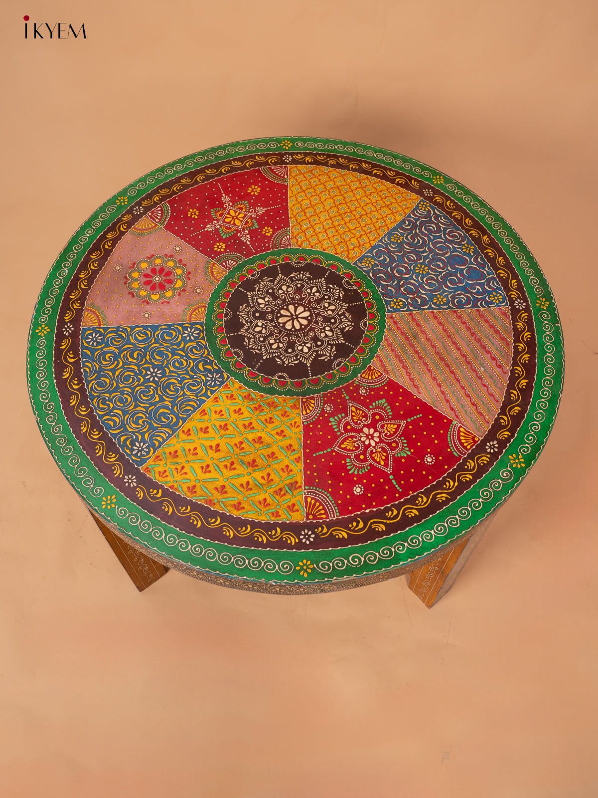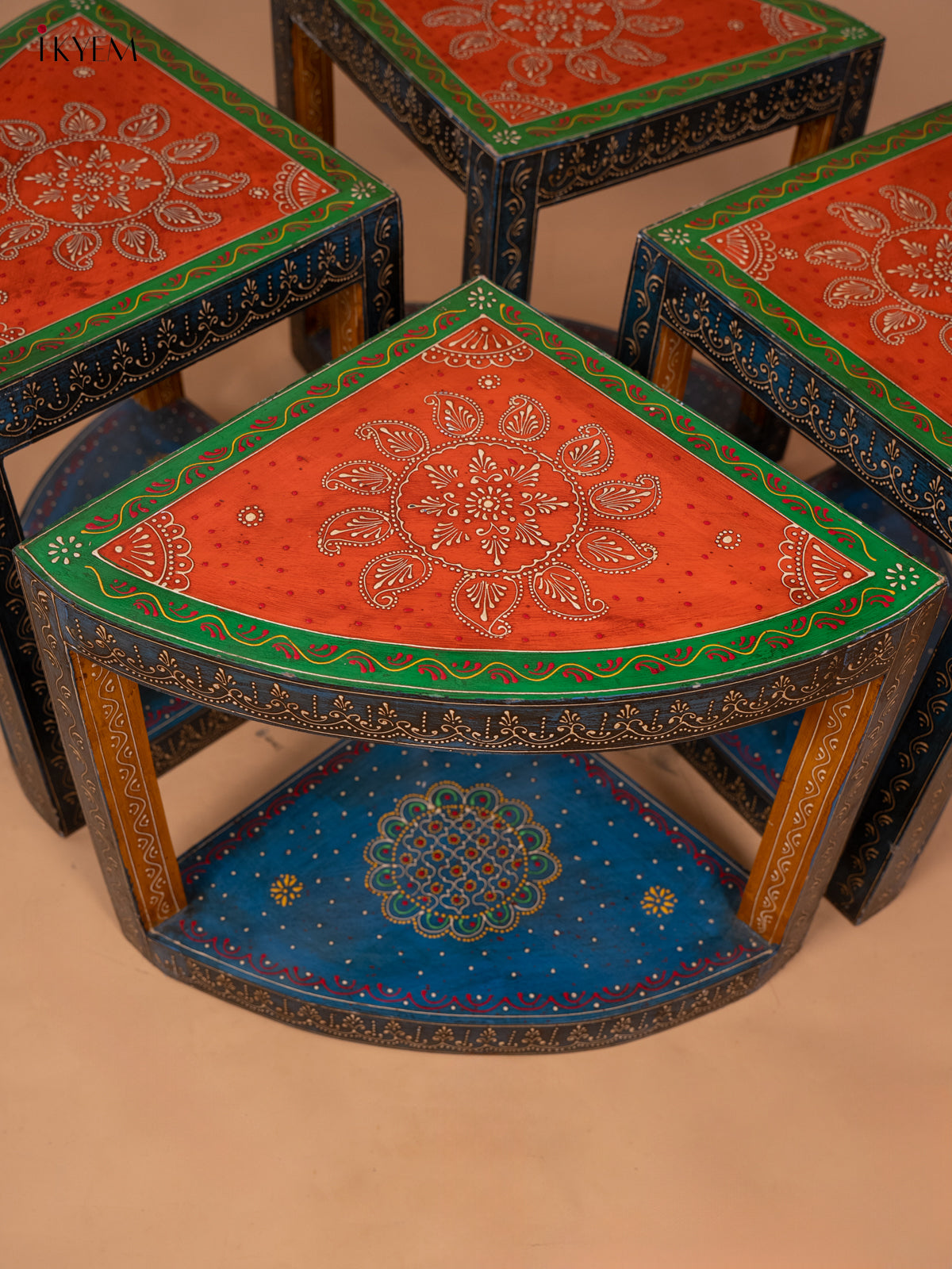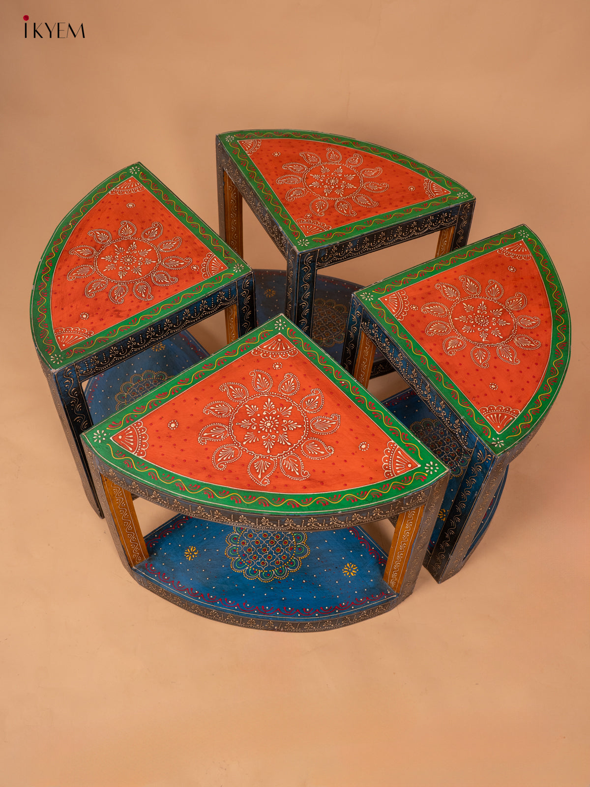 - This wooden hand-painted four-seater set with a centre table offers a stylish and unique design that enhances any living area.