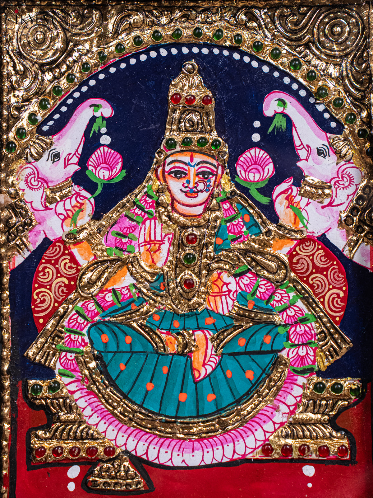 Regal Goddess GajaLakshmi Thanjavur painting (11x9) - KH26128