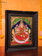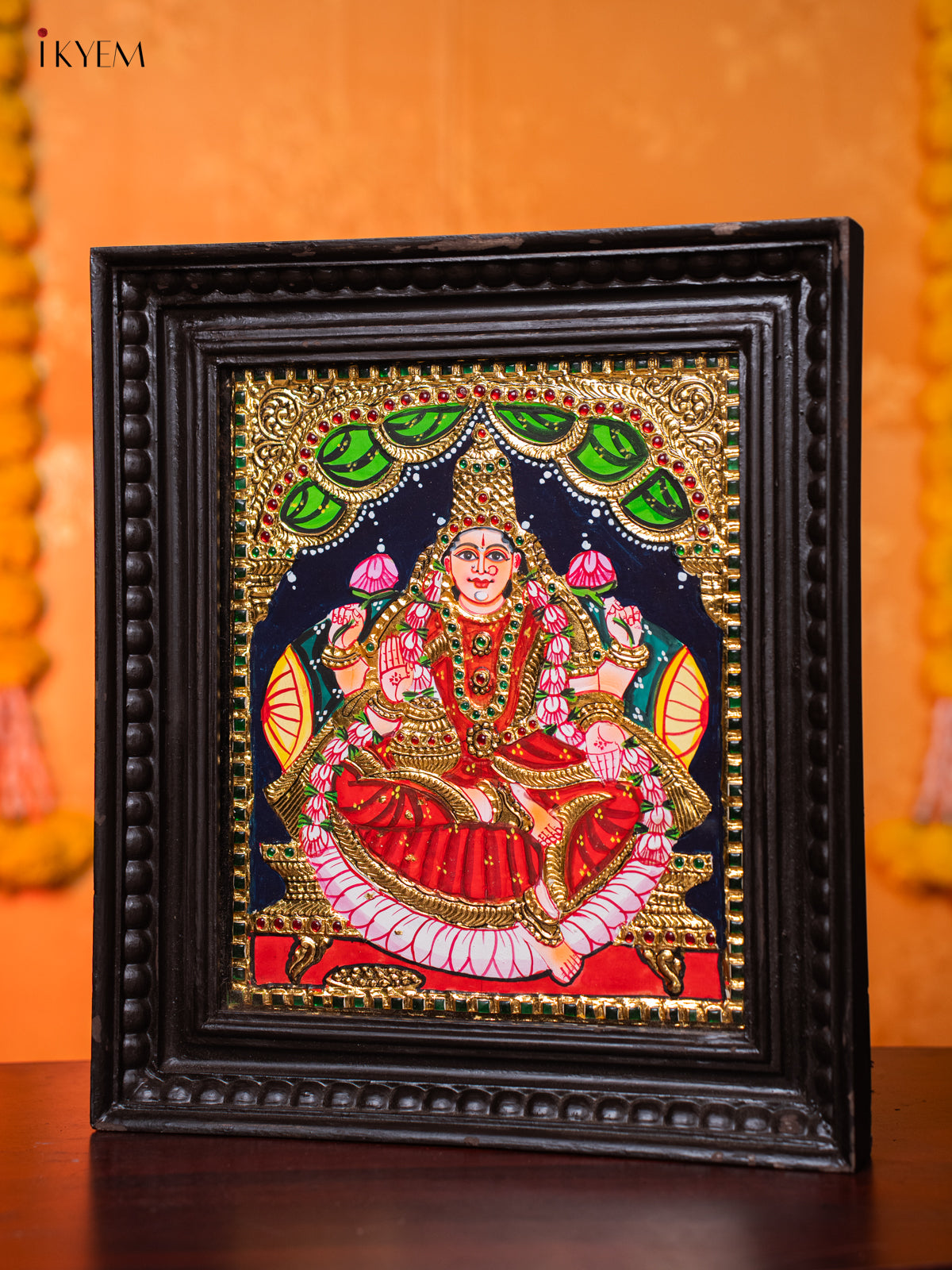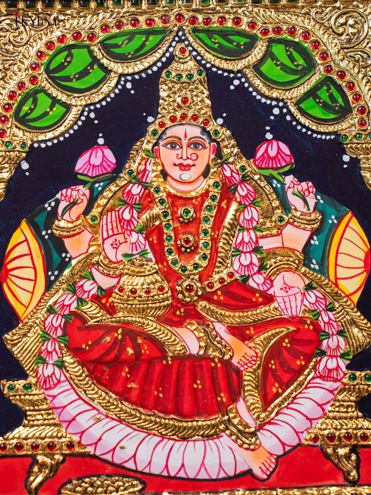 - This traditional Thanjavur Paintings masterpiece depicts the seated form of Goddess Lakshmi, the Hindu deity of wealth and prosperity.