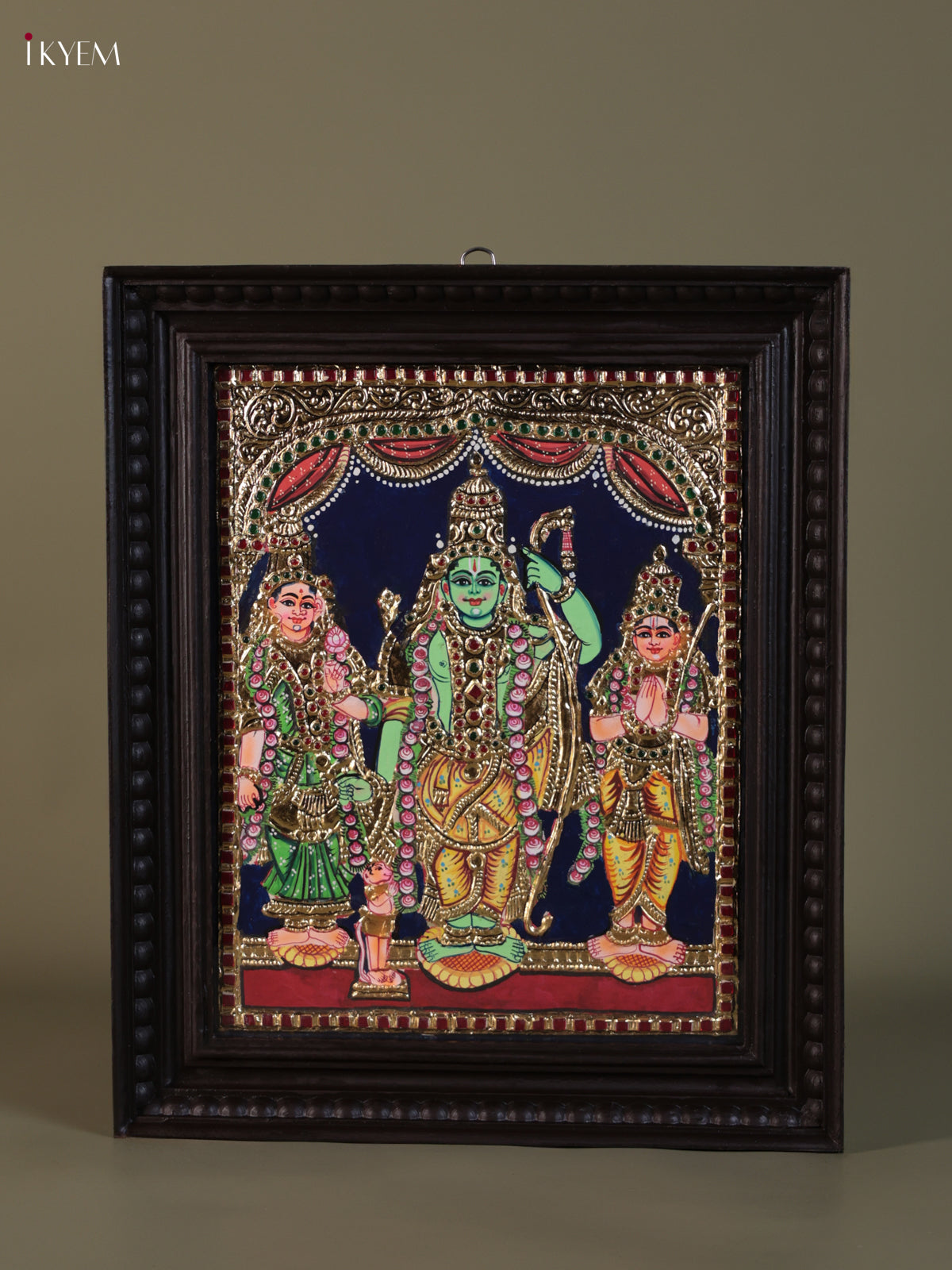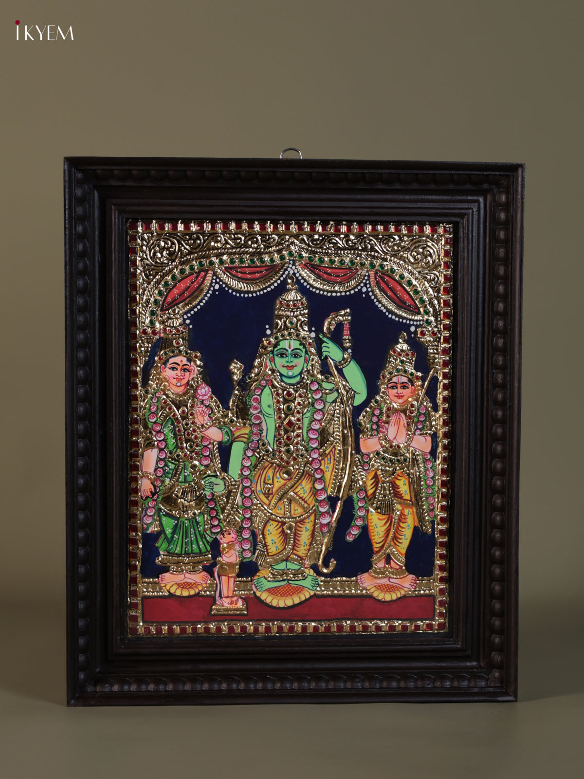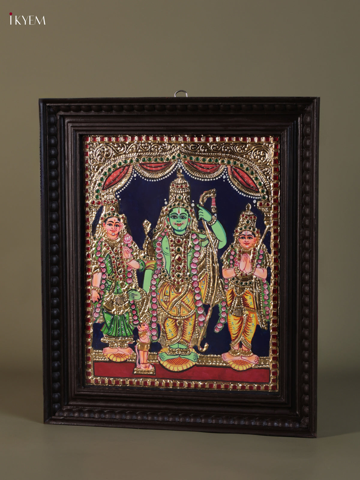 - This Tanjore painting portrays Lord Rama, Goddess Sita, and Lord Lakshmana, traditionally referred to as Ram Parivar
