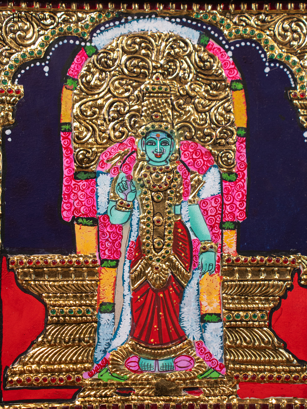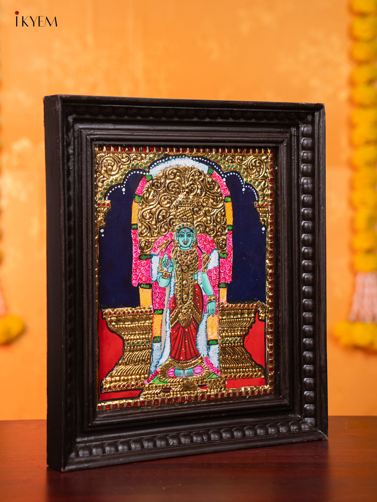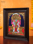Bring divine grace and cultural elegance into your home with the Madurai Meenakshi Sundareswarar Tanjore Painting, beautifully handcrafted and framed in premium teak wood. This traditional Indian artwork measures 15″ (H) × 13″ (W) × 1.5″ (D) and weighs approx 1.73 kg, featuring vibrant colors, rich gold foil detailing, and intricate craftsmanship that enhances pooja rooms, living spaces, or sacred decor.