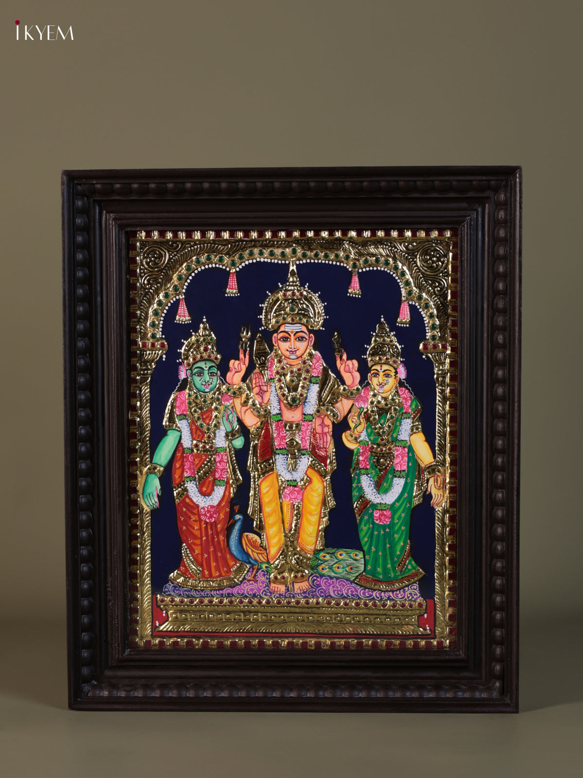 Tanjore paintings are a classic South Indian art form, celebrated for their intricate details, vibrant colors, and spiritual themes of Hindu gods. Their unique craftsmanship, involving gold foil (we use gold dye and NOT pure gold) and natural colors, brings elegance and cultural richness to any space. When framed in traditional Mani/Chettinad Teak wood, the paintings' beauty is enhanced, creating a timeless and sophisticated decorative piece.