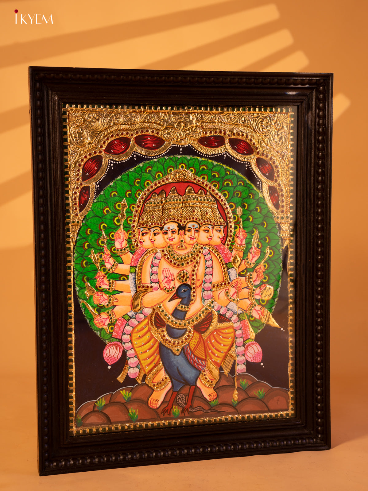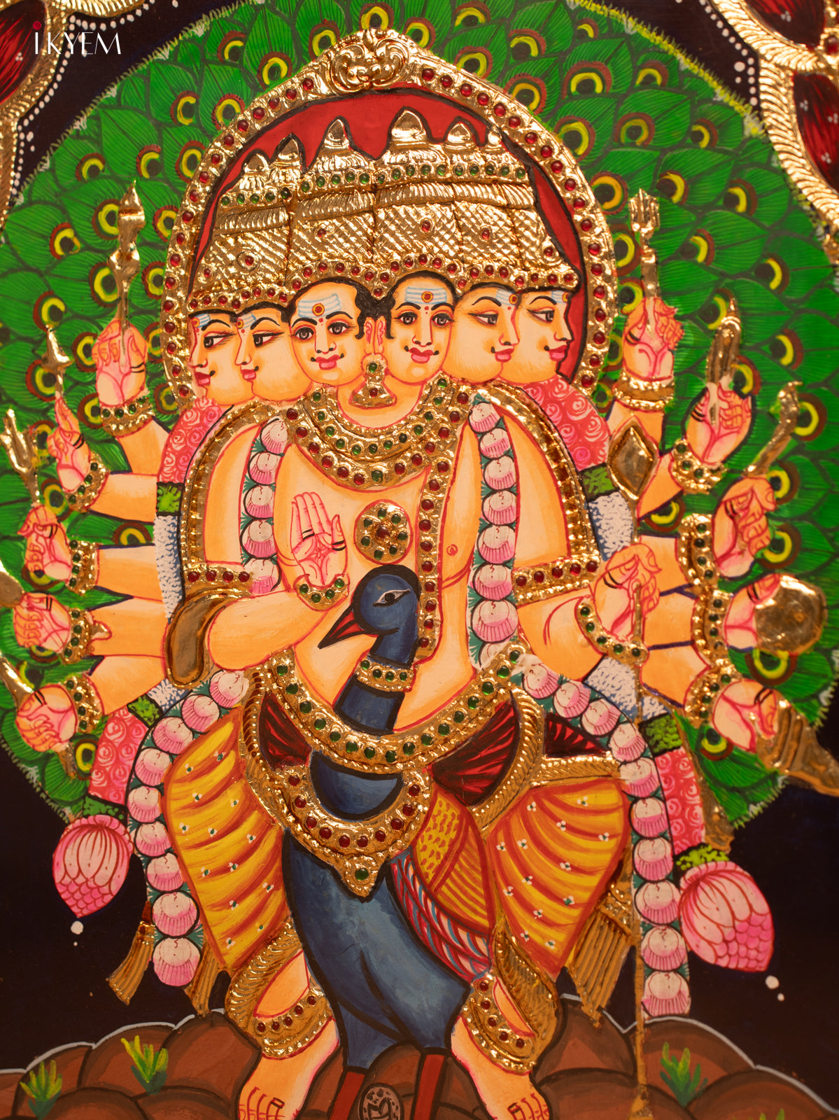 Tanjore paintings are a classic South Indian art form, celebrated for their intricate details, vibrant colors, and spiritual themes of Hindu gods. Their unique craftsmanship, involving gold foil (we use gold dye and NOT pure gold) and natural colors, brings elegance and cultural richness to any space. When framed in traditional Mani/Chettinad Teak wood, the paintings' beauty is enhanced, creating a timeless and sophisticated decorative piece.