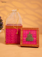 Korai Gift Box with Net Potli with Lakshmi Motif - 7 inch- Pink -KB17140