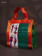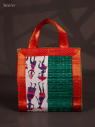 Warli Design Korai Bag With Zari Border - Green - 9 Inch - KN28113