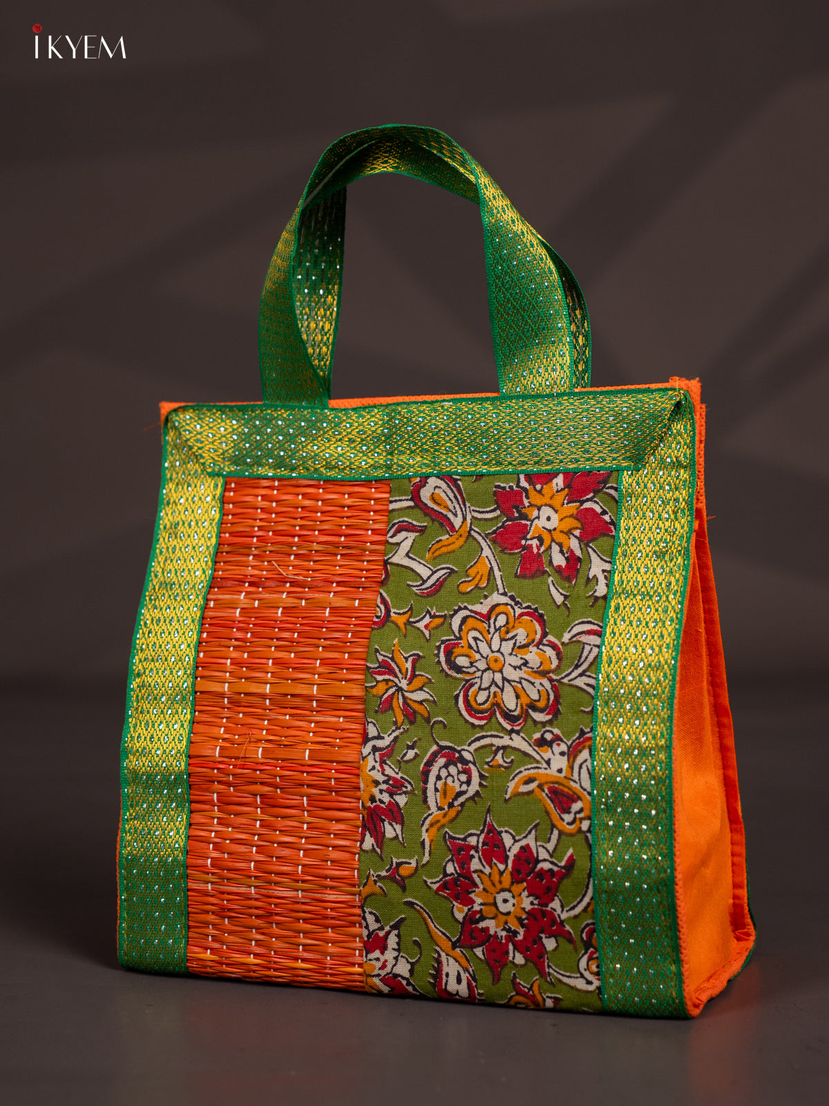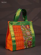 Flower Design Korai Bag With Zari Border - Orange - 9 Inch - KN28126