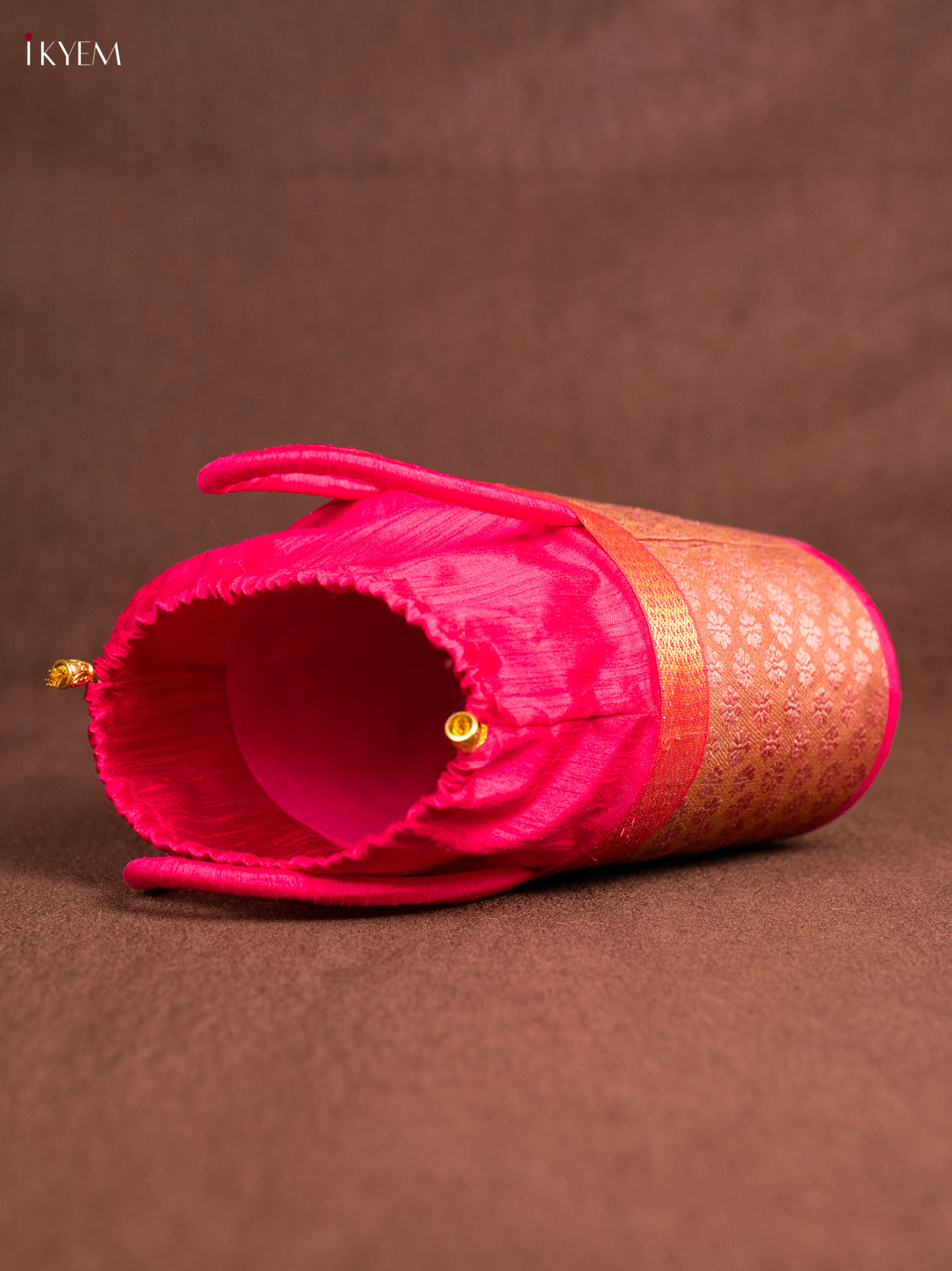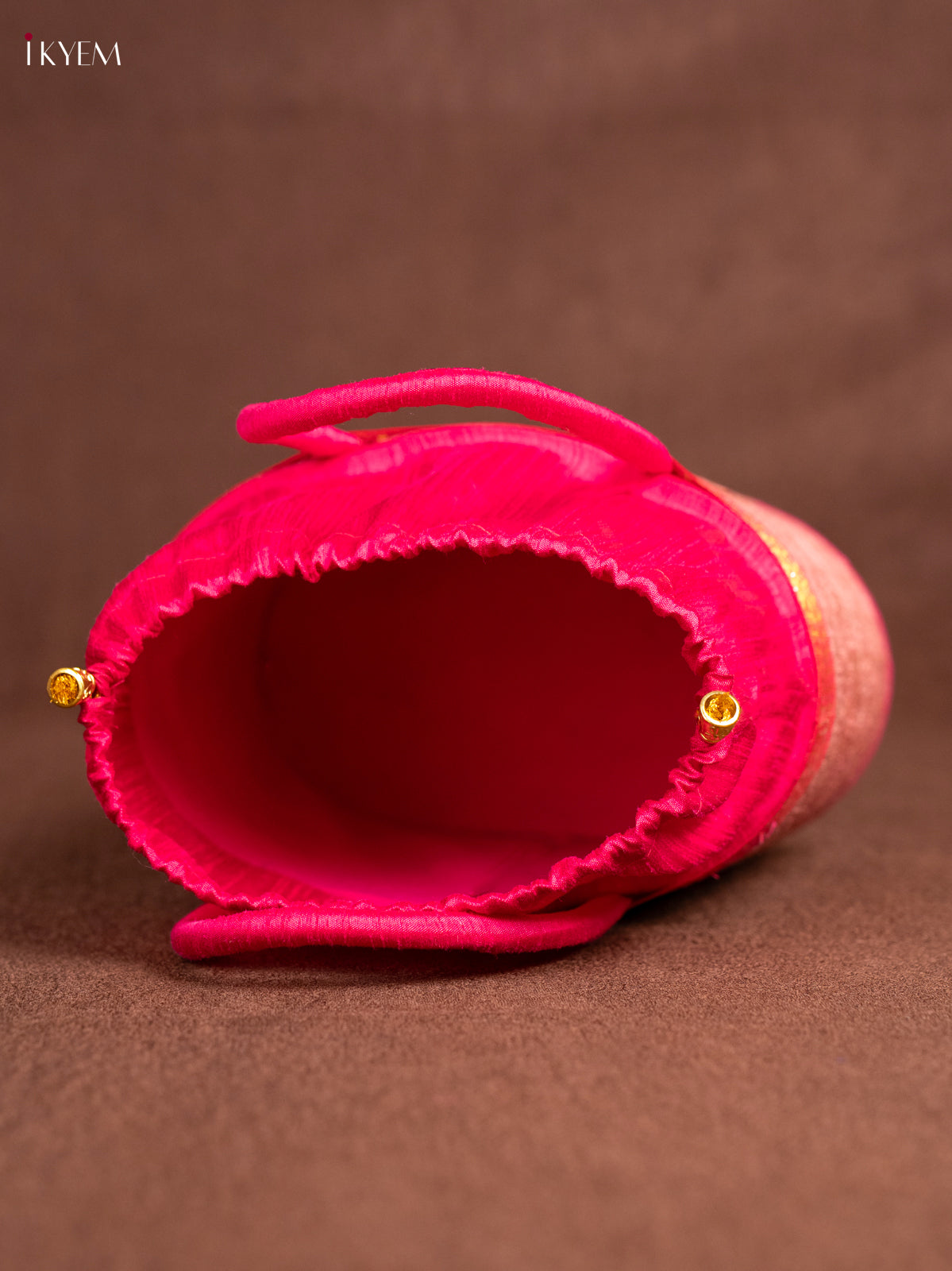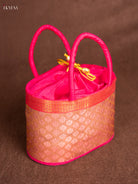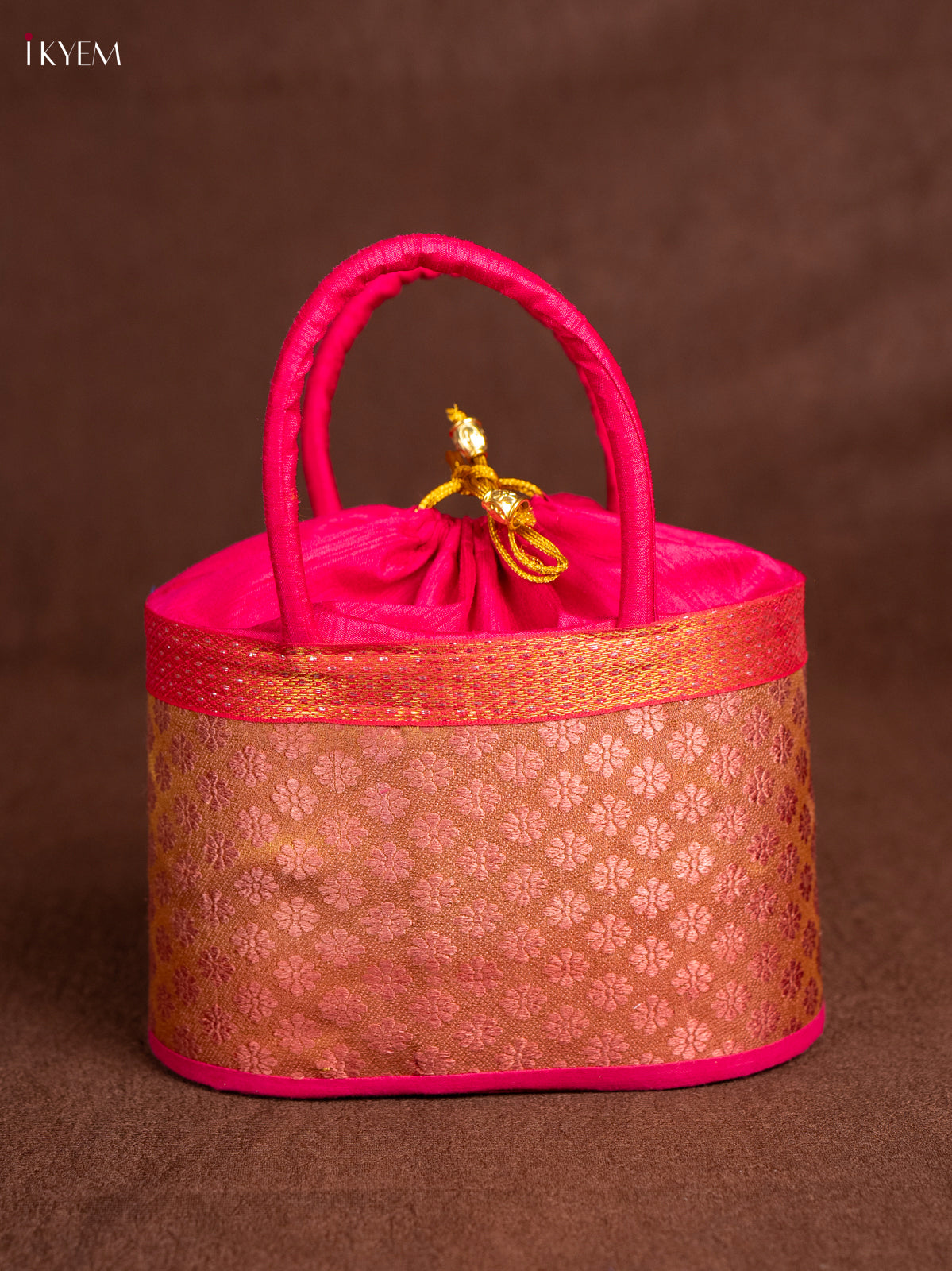 Raw Silk Korai Stackable Basket With Potli - Pink - 6 Inches - KN28132