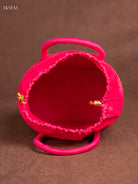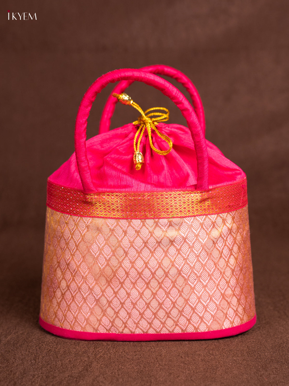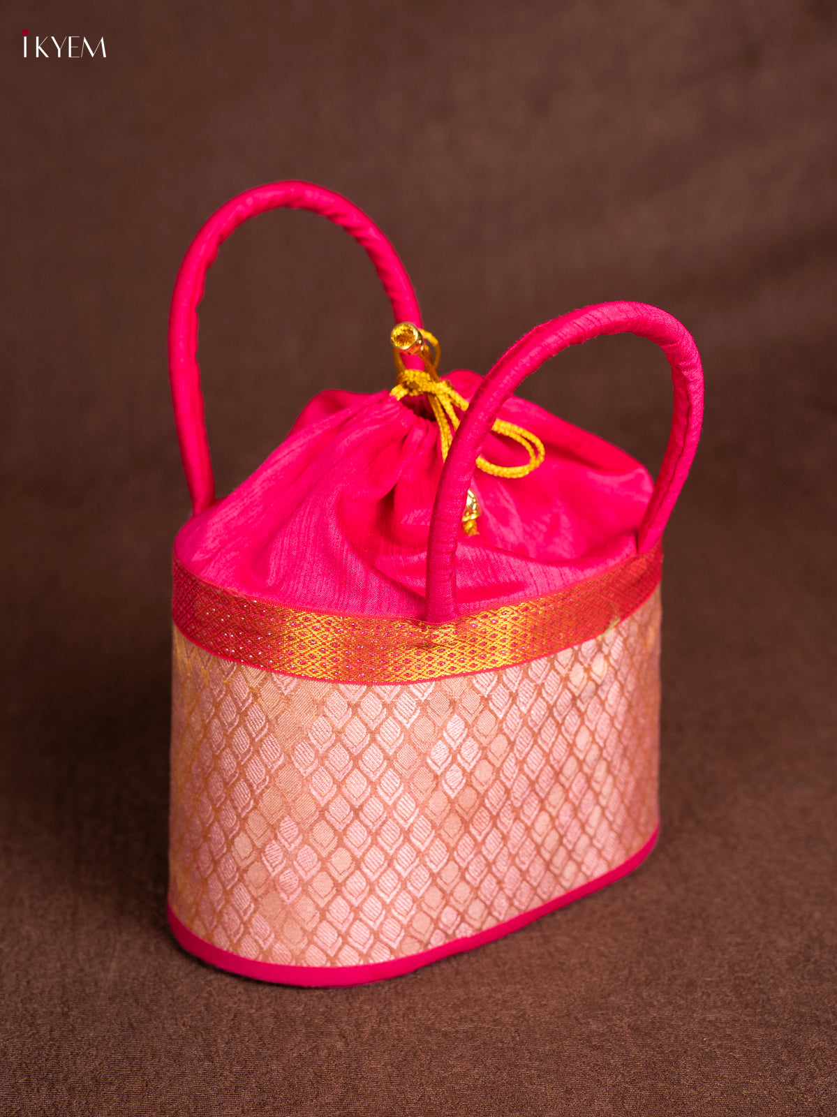 Raw Silk Korai Stackable Basket With Potli - Pink - 6 Inches - KN28133