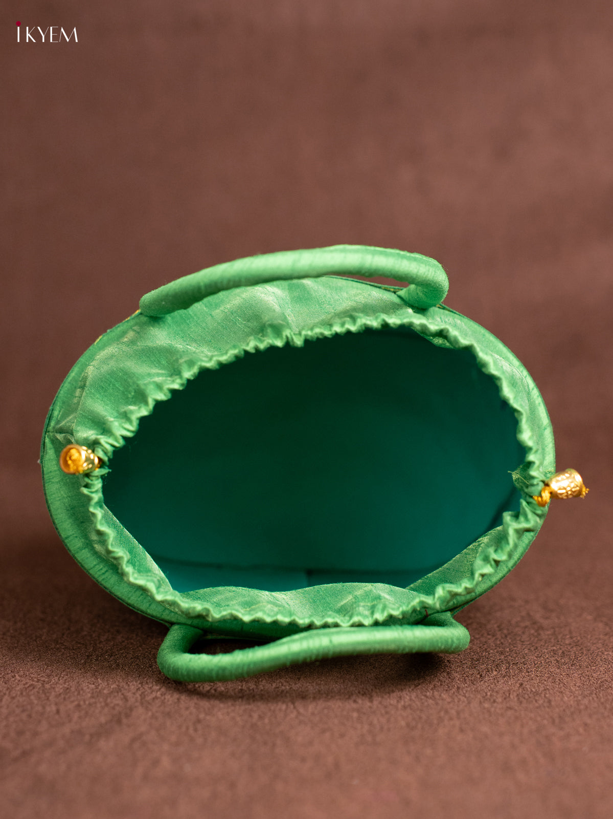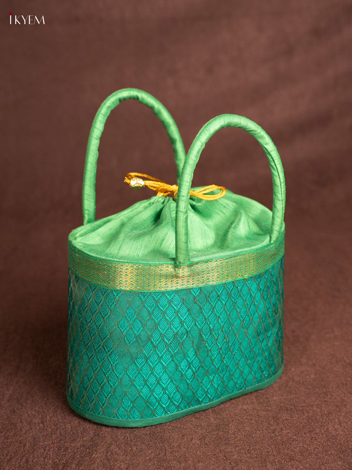 Raw Silk Korai Stackable Basket With Potli - Green - 6 Inches - KN28134