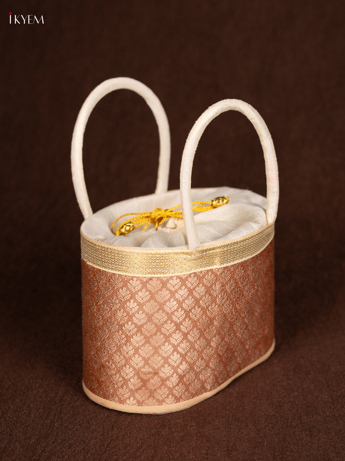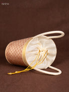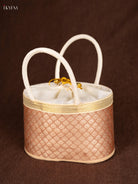 Raw Silk Korai Stackable Basket With Potli - Peach - 6 Inches - KN28136