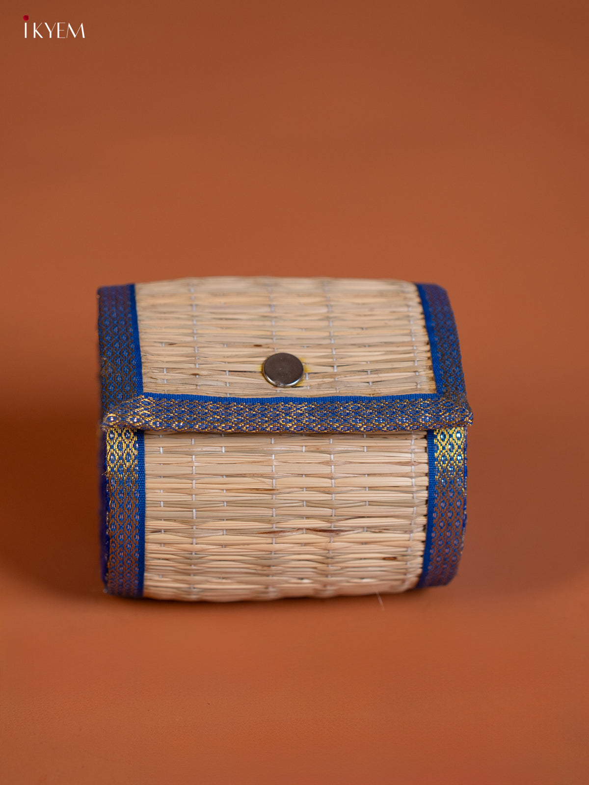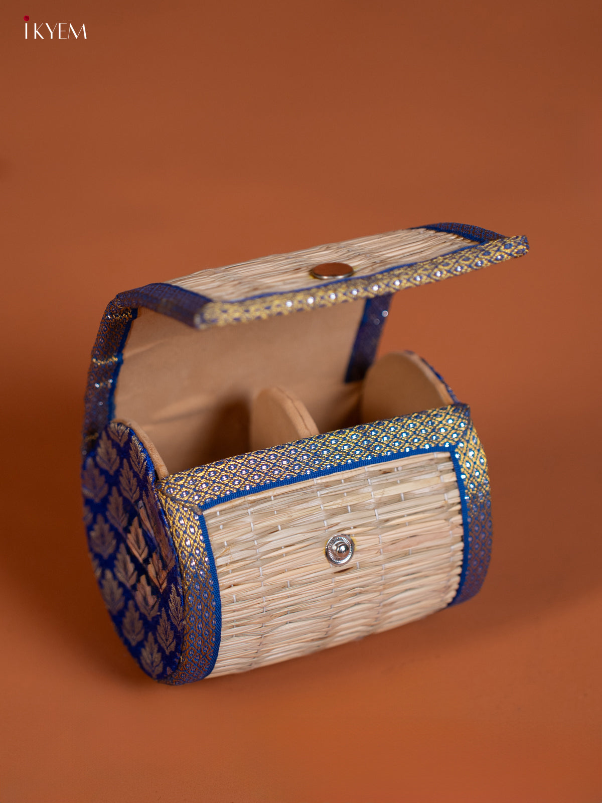 - This Half Raw Silk bangle box features a Korai round design in sandal and blue, blending traditional elegance with a distinctive style.