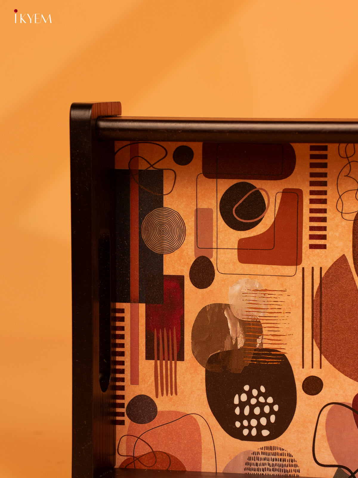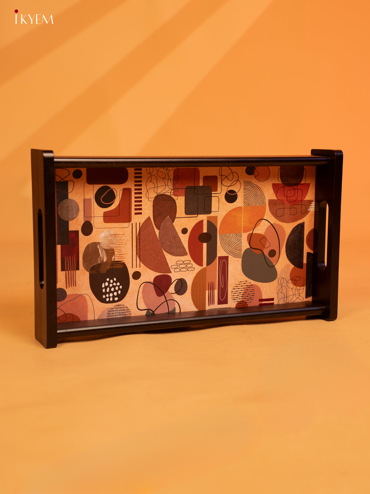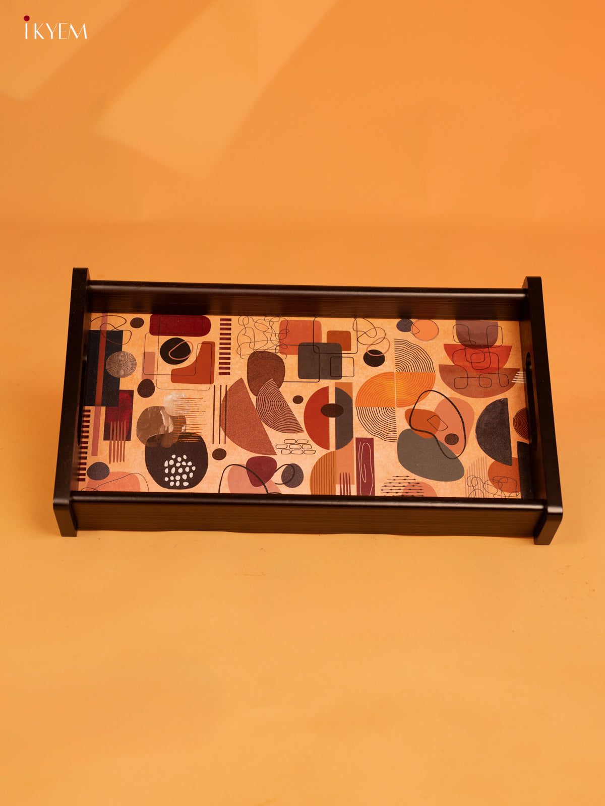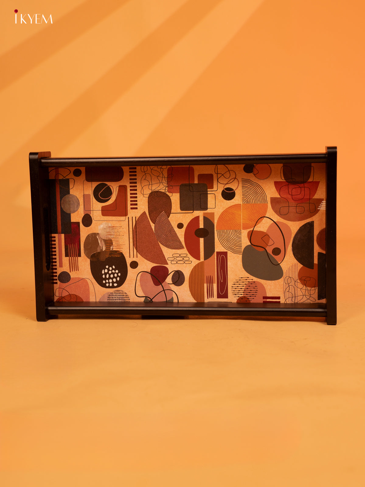 Brown Abstract Art Printed Wooden Tray (14×8) - KL18119