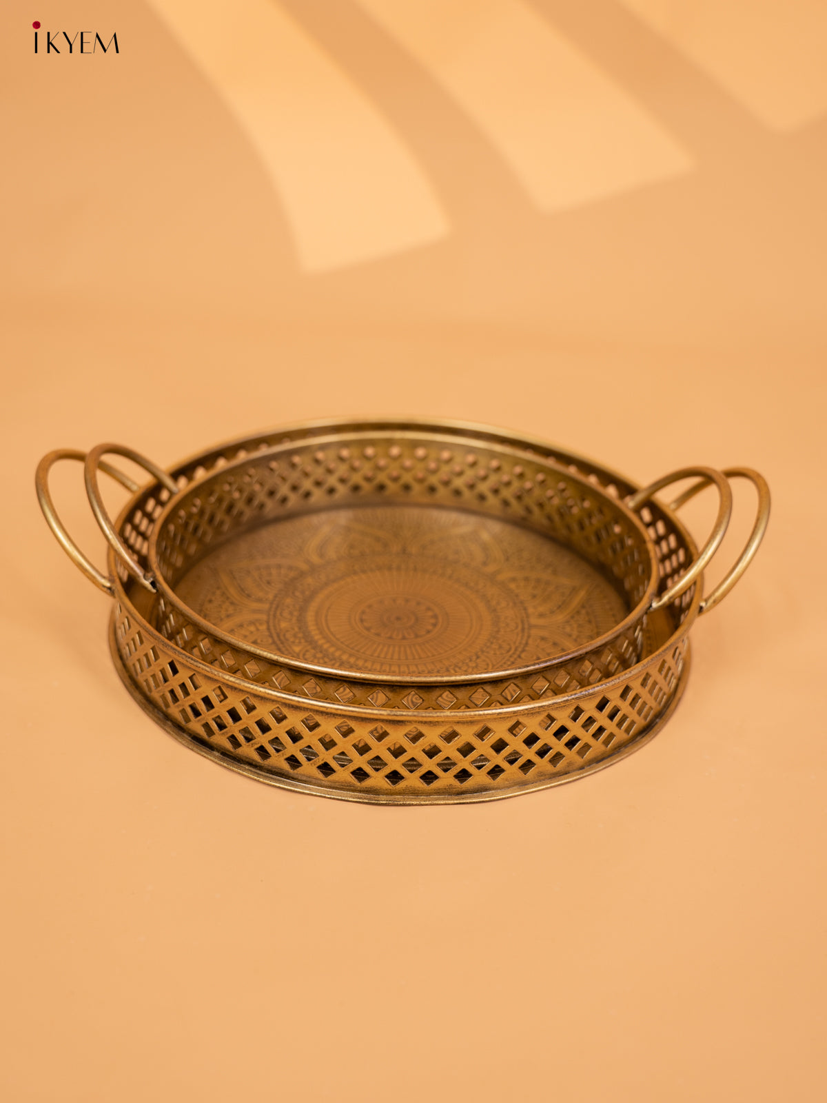 - Expertly crafted with metal, this round capsule tray chakra set of 2 is the perfect traditional tray for storing your spiritual items.