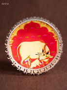 Digital Printed German Silver Tray - 6 Inch - Cow & Calf - Orange - KE28135