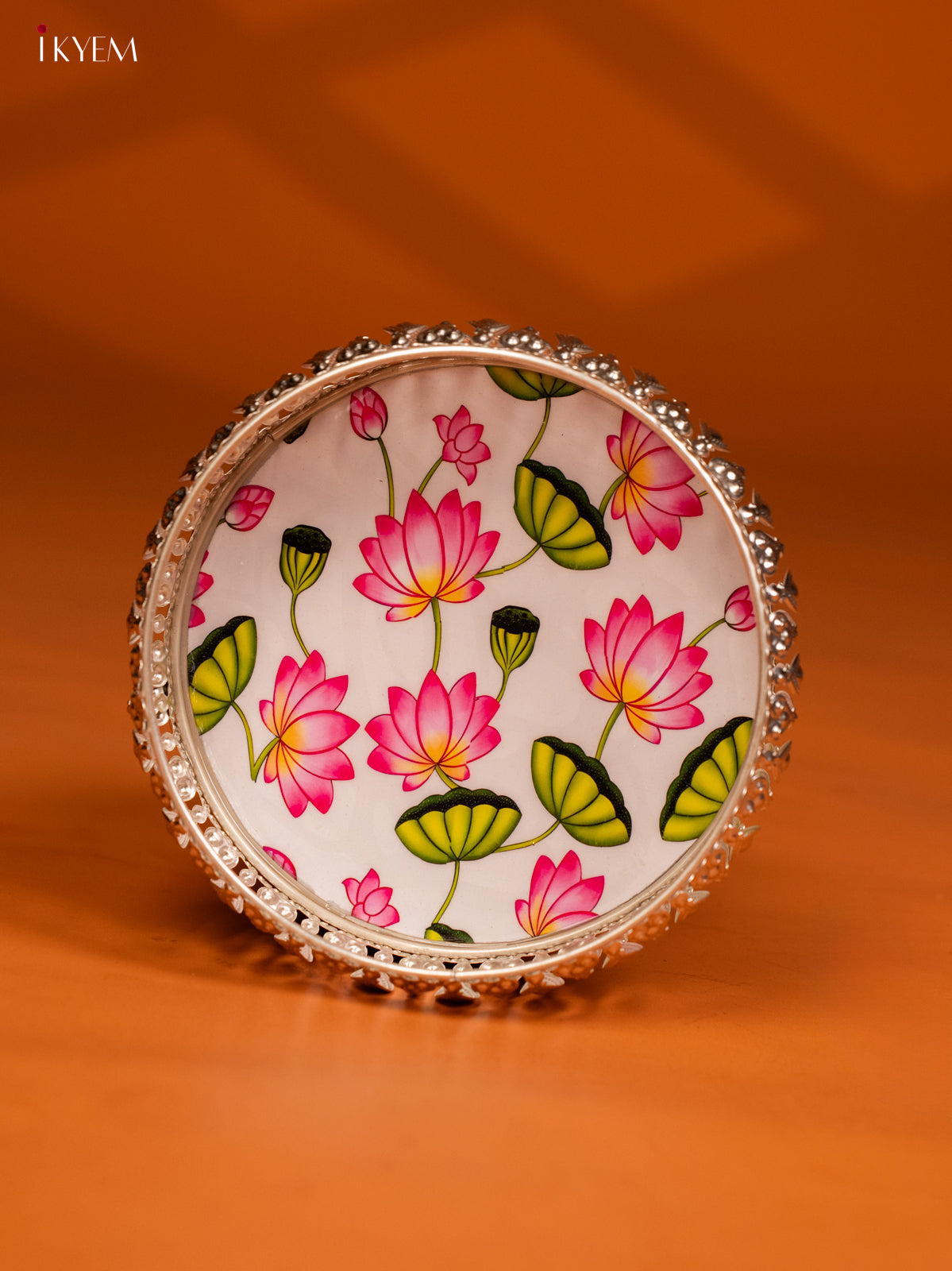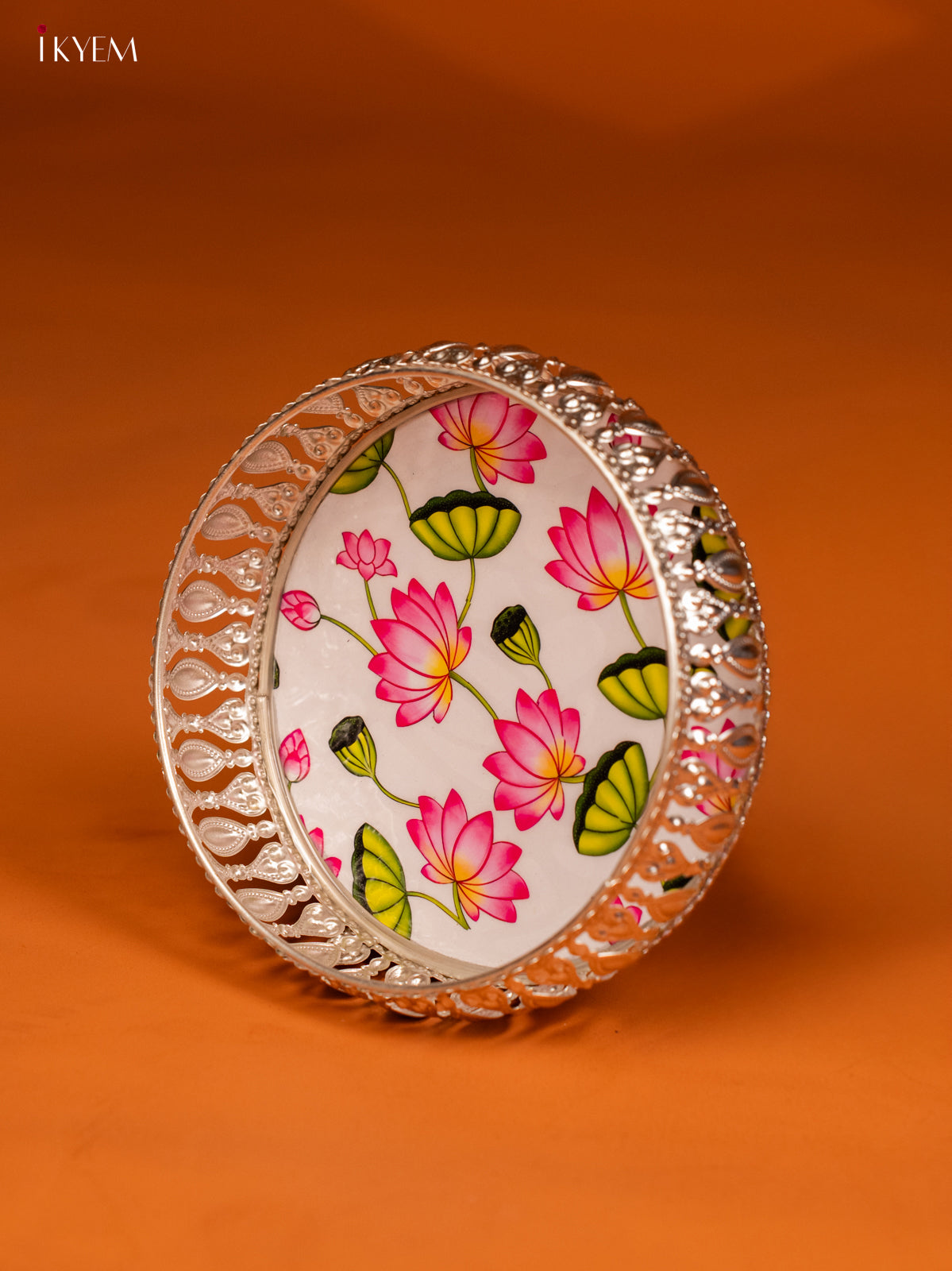 Digital Printed German Silver Tray - 6 Inch - Lotus - Pink - KE28136